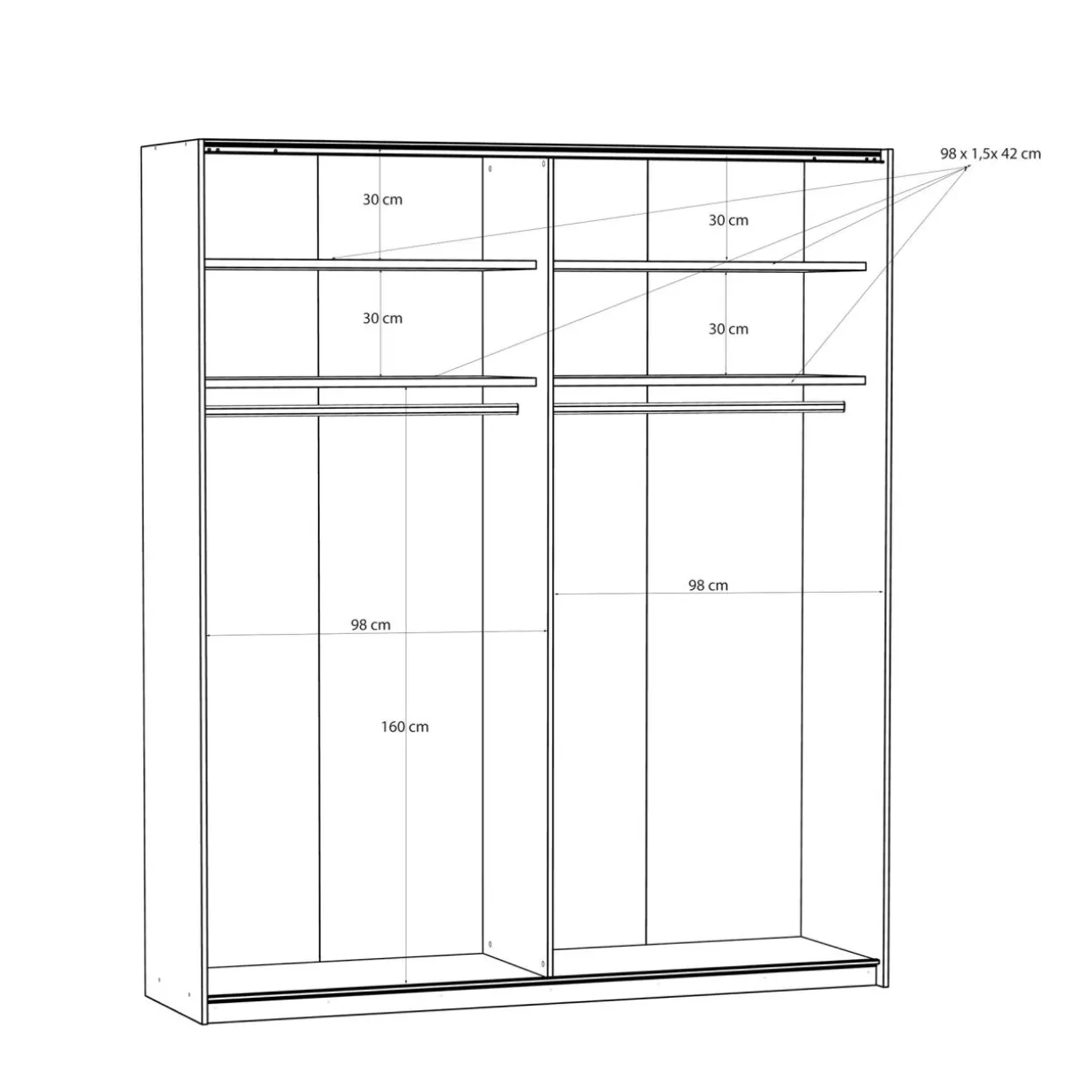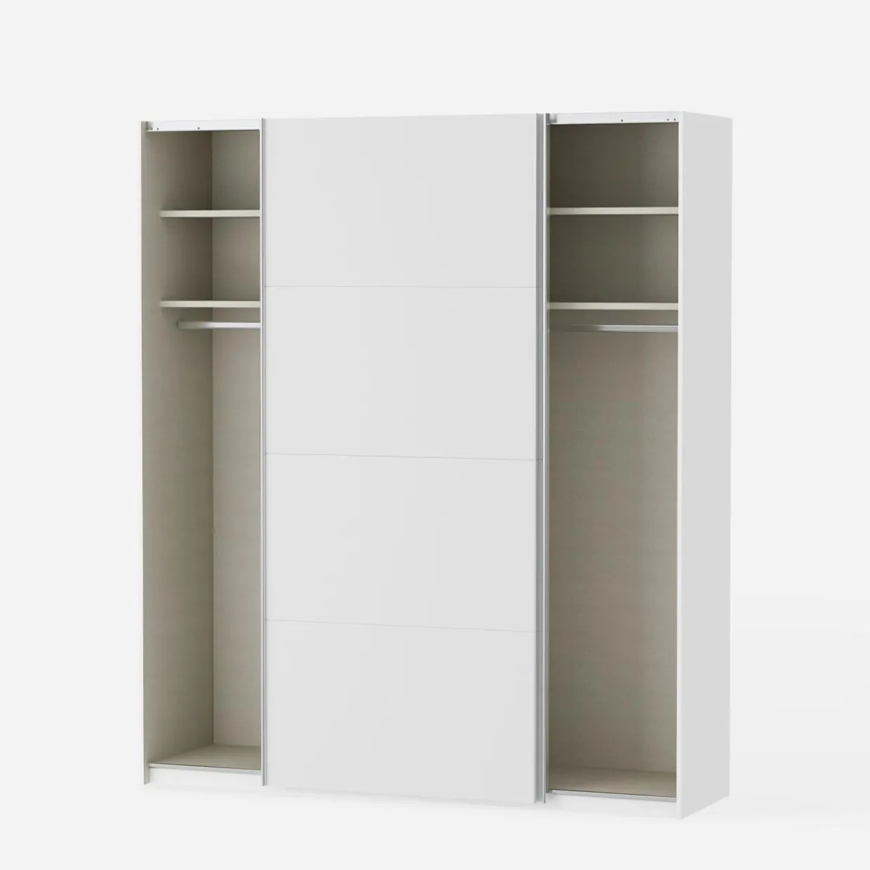 - Podzielona na dwie części — równomierne ułożenie półek i drążków w szafie umożliwia podzielenie wnętrza na różne sposoby; osobna część dla Ciebie i partnera lub dwójki rodzeństwa.