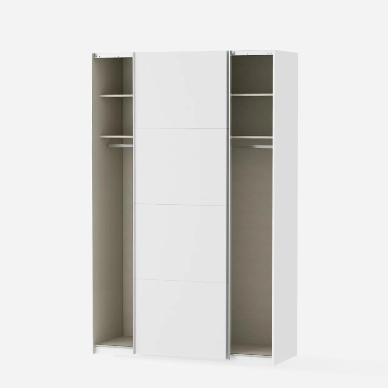 - Podzielona na dwie części — równomierne ułożenie półek i drążków w szafie umożliwia podzielenie wnętrza na różne sposoby; osobna część dla Ciebie i partnera lub dwójki rodzeństwa.