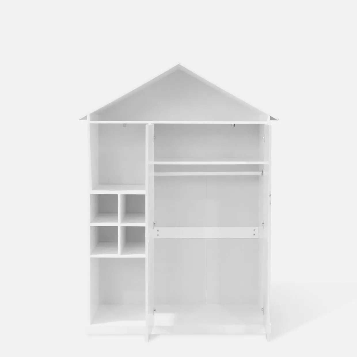 - Przemyślany układ – zamknięta szafa z dużą pojemnością oraz otwarty regał, idealny na ulubione książki, zabawki czy pamiątki.