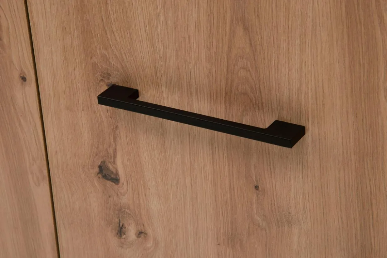 Prosta forma, wąskie uchwyty i kolor jasnego dębu artisan sprawiają, że nawet w środku miasta poczujesz się jak w wiejskiej chatce.