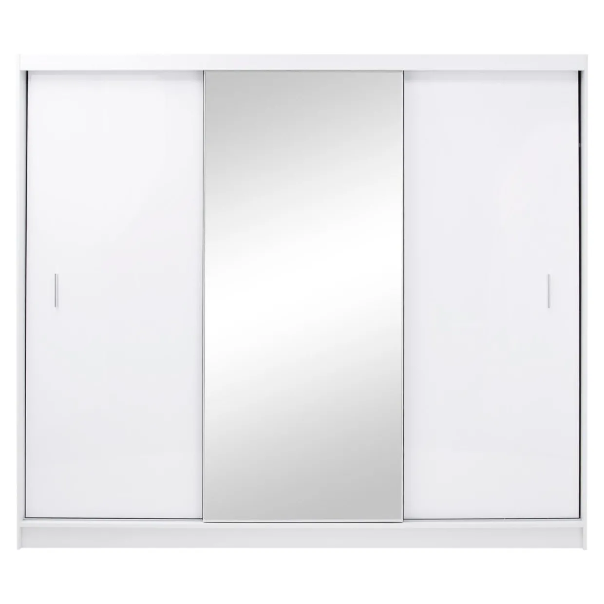 Biała szafa z lustrem MARSYLIA pomoże zorganizować zarówno wieszaki z sukienkami, koszulami czy płaszczami, a poskładane ubrania i akcesoria przechowasz w dużych wnękach.