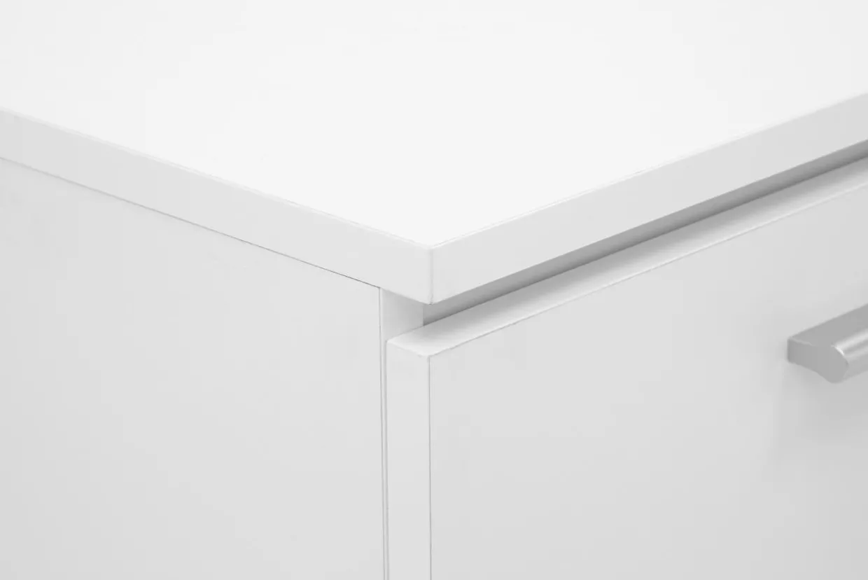 - Prosta forma bryły, wykończona białym korpusem i frontem sprawi, że z łatwością wkomponujesz ją w nowoczesne wnętrze.