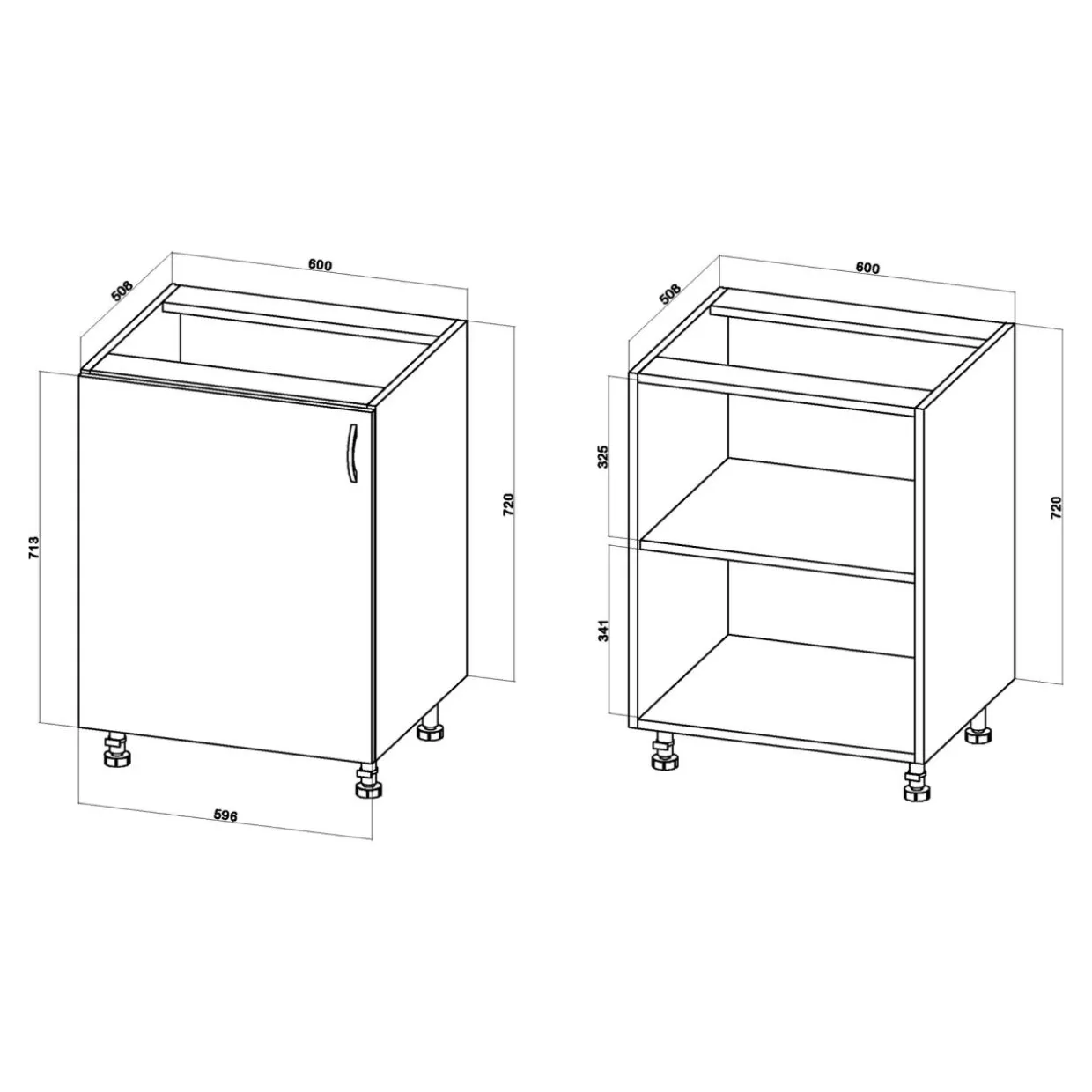 Wysoka na 82 cm szafka o szerokości 60 cm pozwala wygospodarować miejsce na naczynia, garnki oraz pomoce kuchenne, które dobrze mieć w zasięgu ręki podczas przyrządzania posiłku. Wnętrze szafki zostało przedzielone półką.