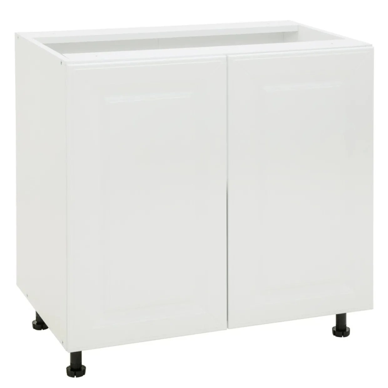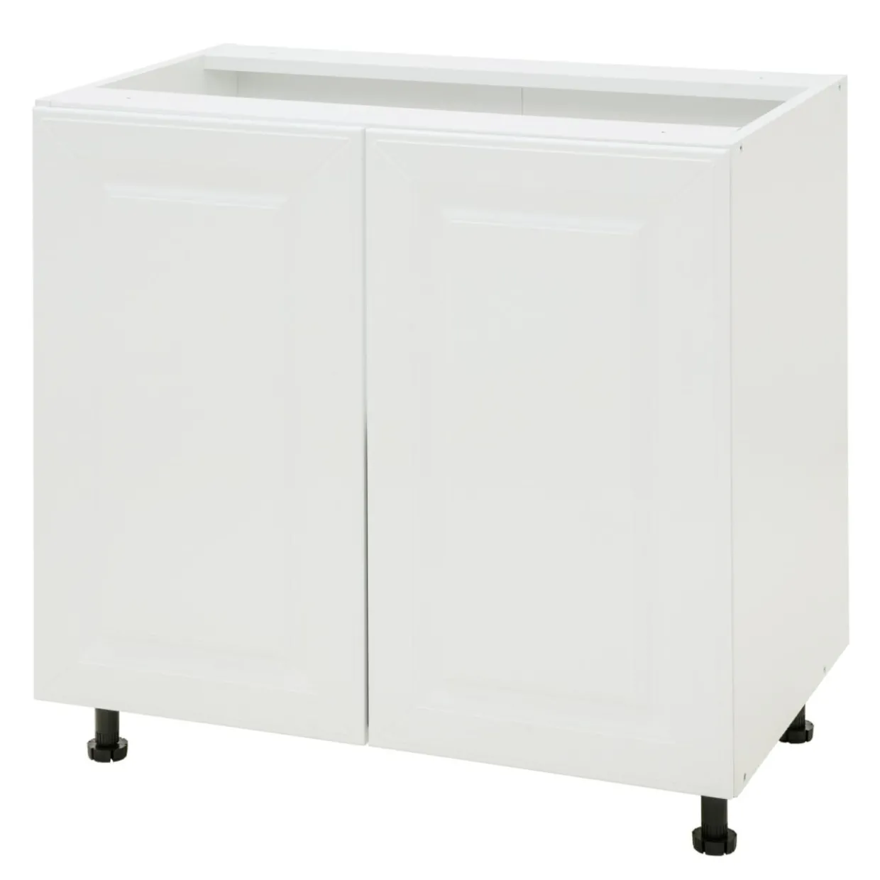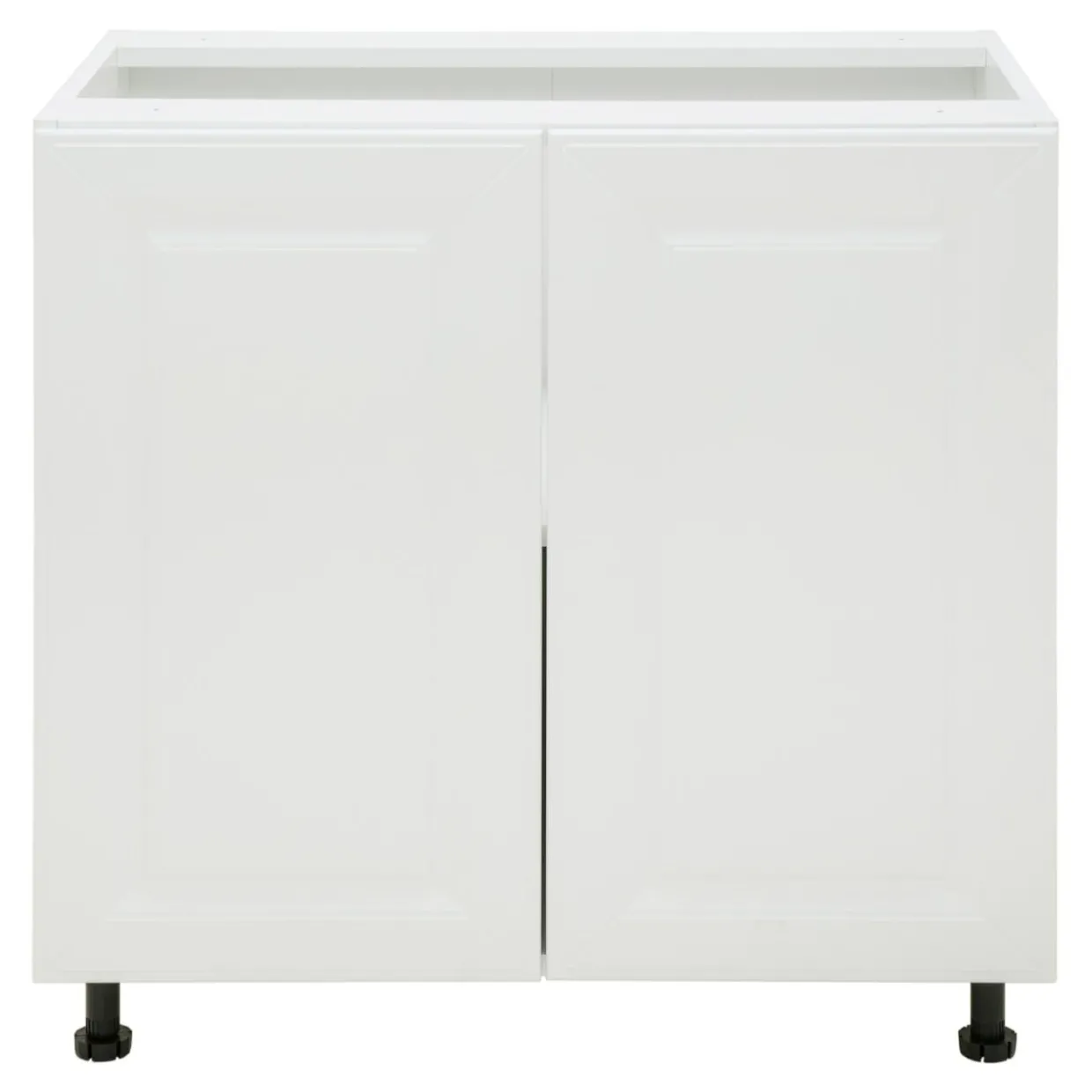 Front zamykanej szafki BASIC PLUS BP/D80 został wykończony w matowym odcieniu bieli. Uwagę zwraca charakterystyczna ramka, wewnątrz której umieszczone zostało zdobienie.