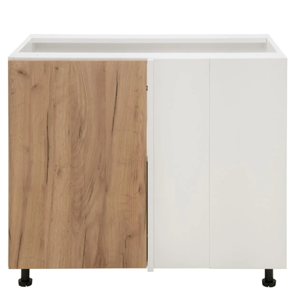 Ten model szafki BASIC PLUS świetnie sprawdza się w kameralnym wnętrzu. Jej front został wykończony laminatem. Biały kolor korpusu oraz front w kolorze drewna złoty dąb craft są doskonałą bazą dla zestawienia z jasną kolorystyką pozostałych mebli wchodzących w skład kuchennej aranżacji.