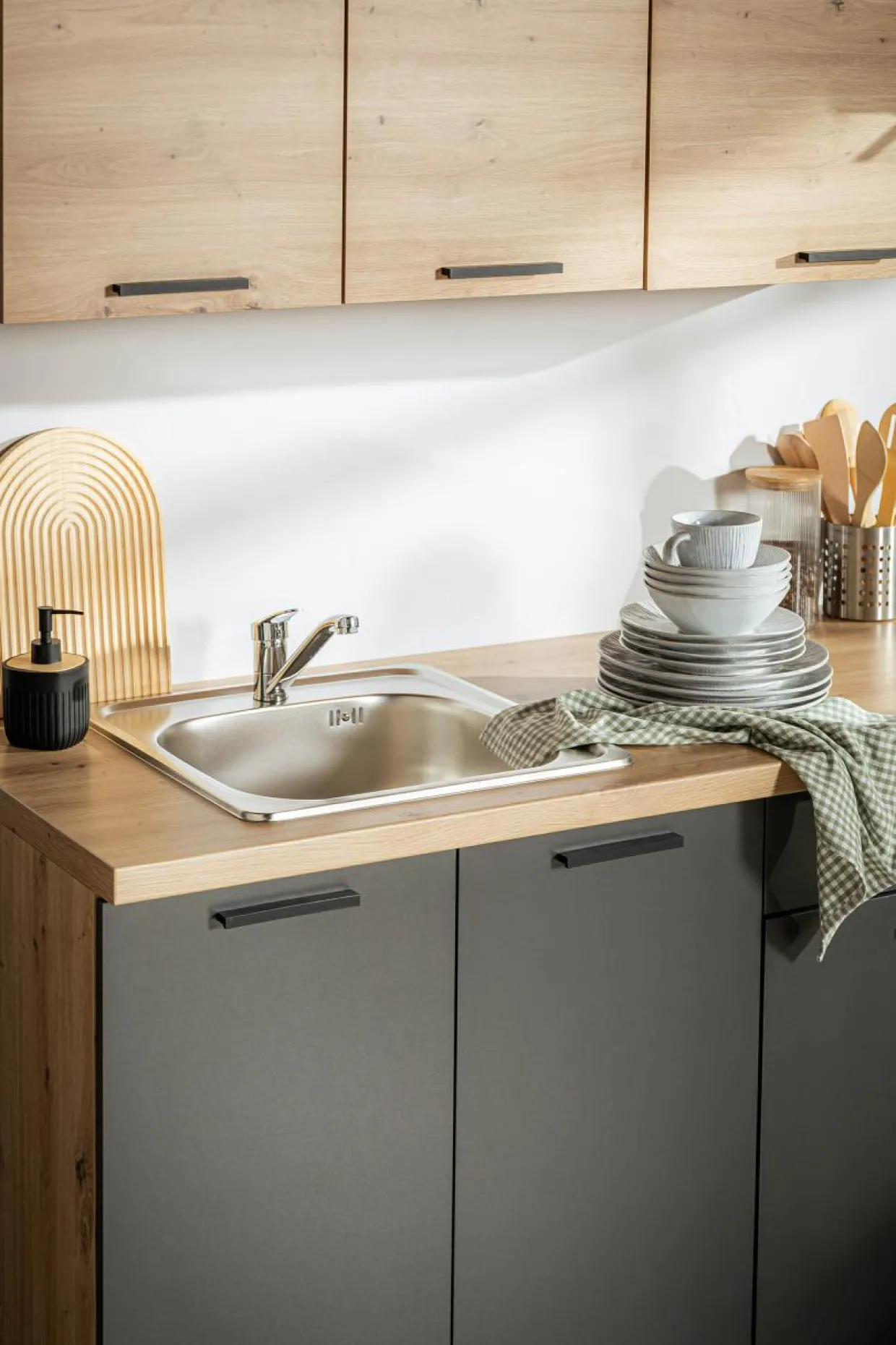 Doskonałe dopasowanie oraz wykończenie w odcieniu grafitu sprawi, że Twoja kuchnia będzie wyglądała nienagannie.
