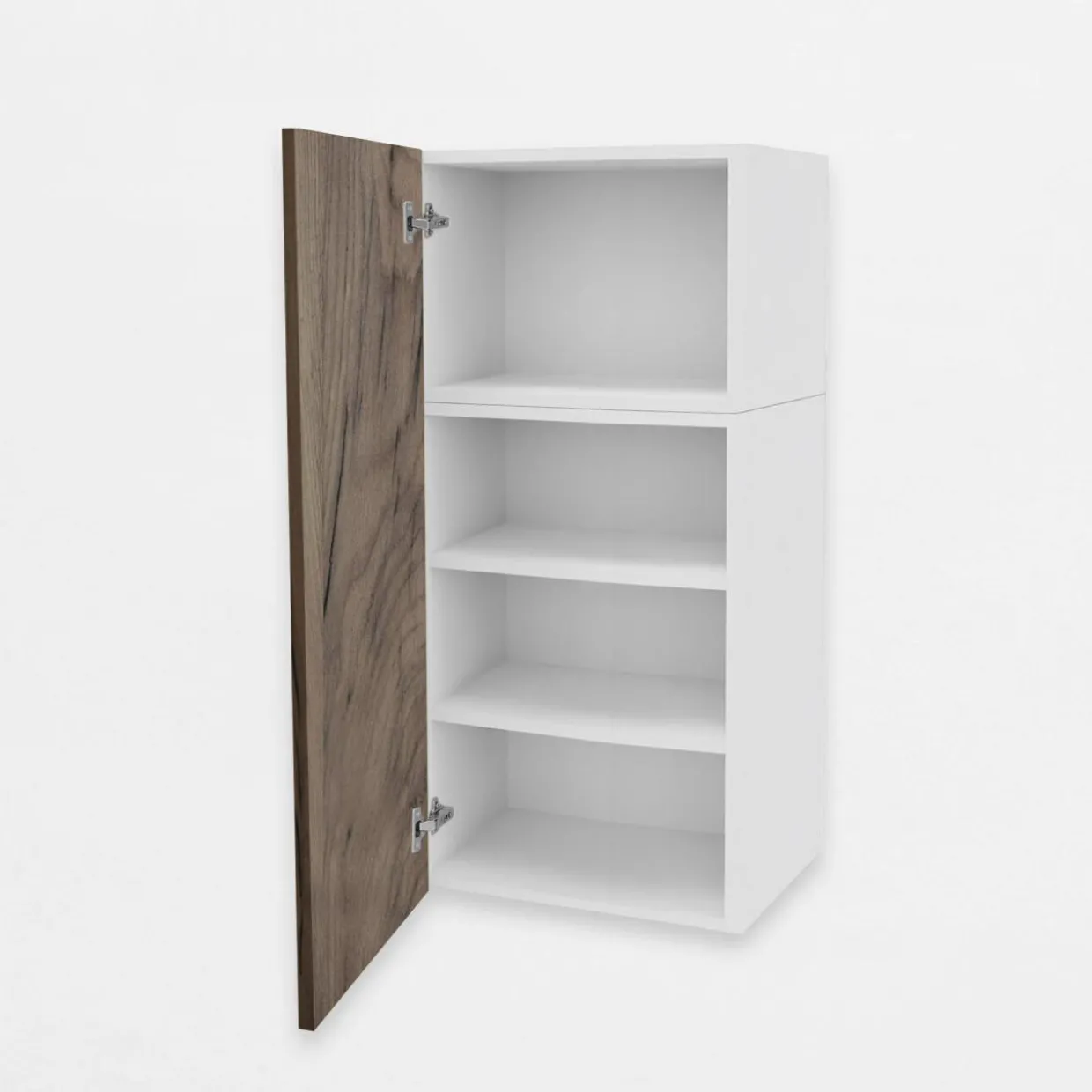 - Wysoka na 108 cm bryła mebla jest łączona z 2 korpusów i podzielona na 4 wnęki. Pozwala na intuicyjnie rozmieszczone naczyń oraz produktów żywnościowych.
