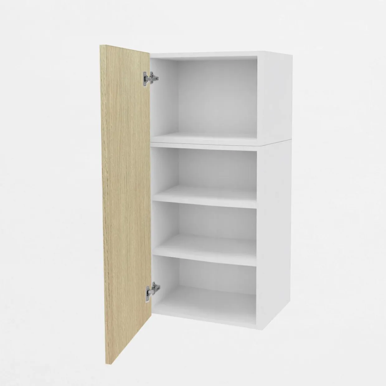 - Wysoka na 108 cm bryła mebla jest łączona z 2 korpusów i podzielona na 4 wnęki. Pozwala na intuicyjnie rozmieszczone naczyń oraz produktów żywnościowych.