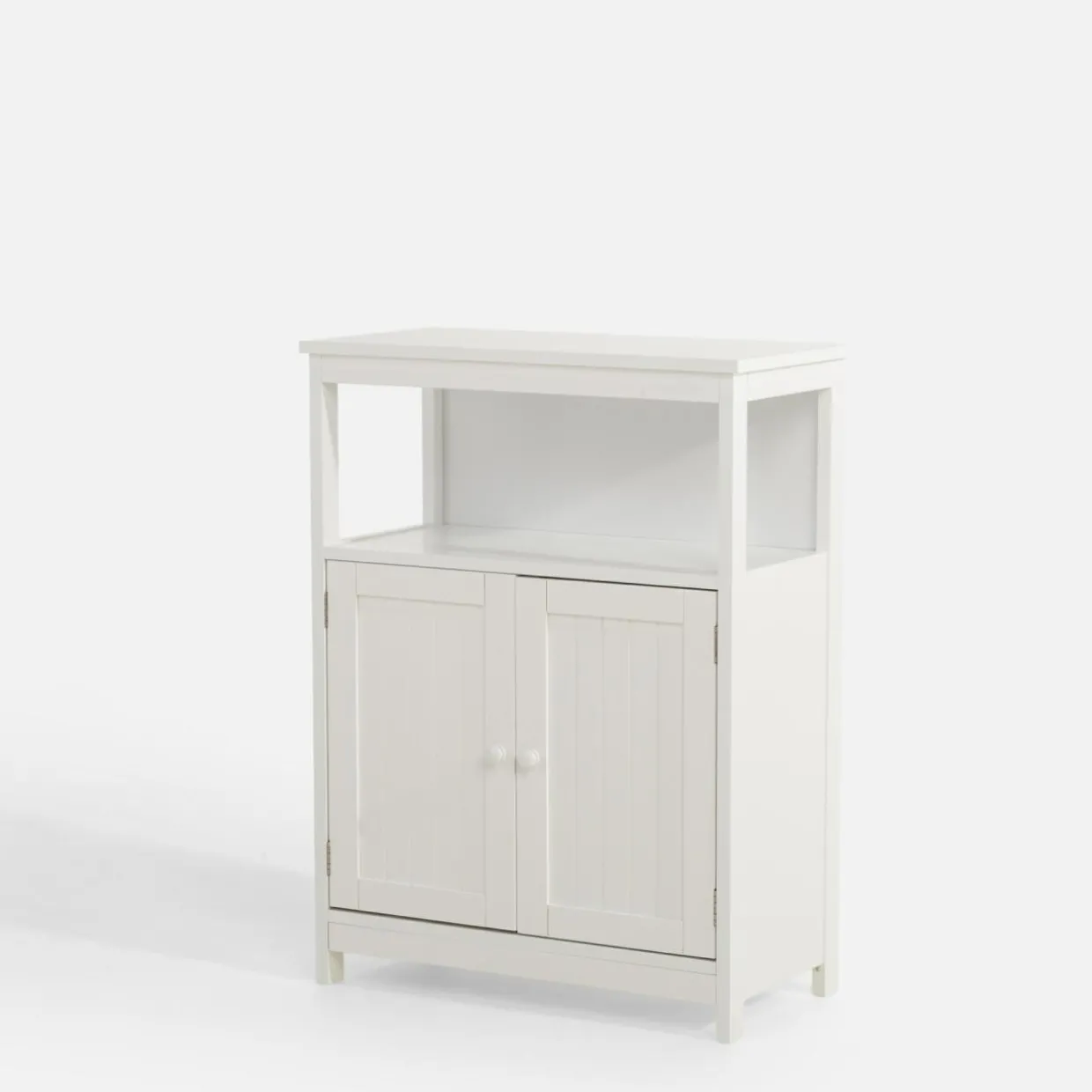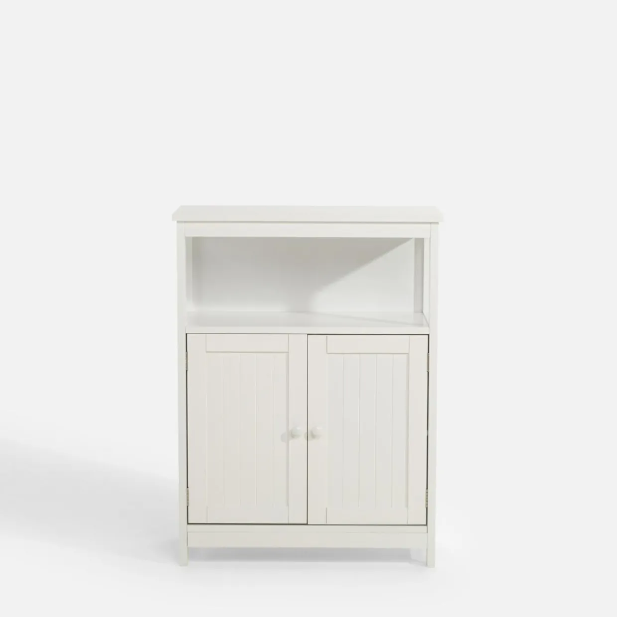 Szafka łazienkowa PARLA świetnie uzupełni małą, prowansalską łazienkę. Białe wykończenie i fronty w formie ramki z wypełnieniem z desek nadadzą swojskiego klimatu.