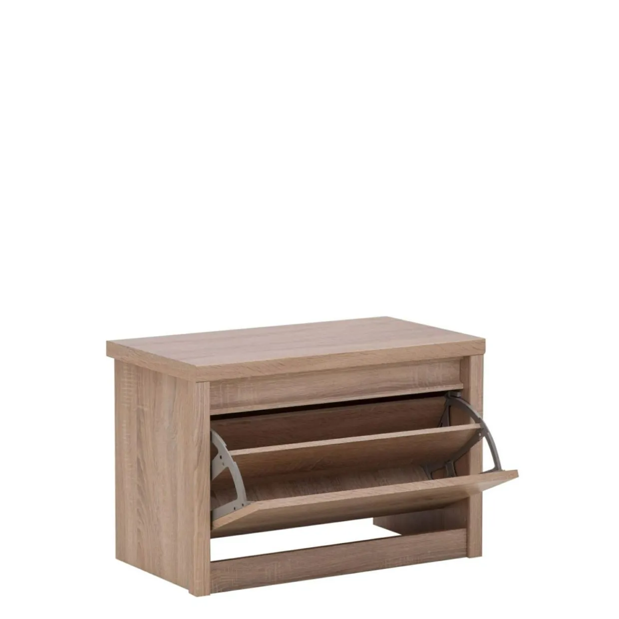 W szafce przechowasz obuwie, szafka posiada jedne drzwi uchylne.