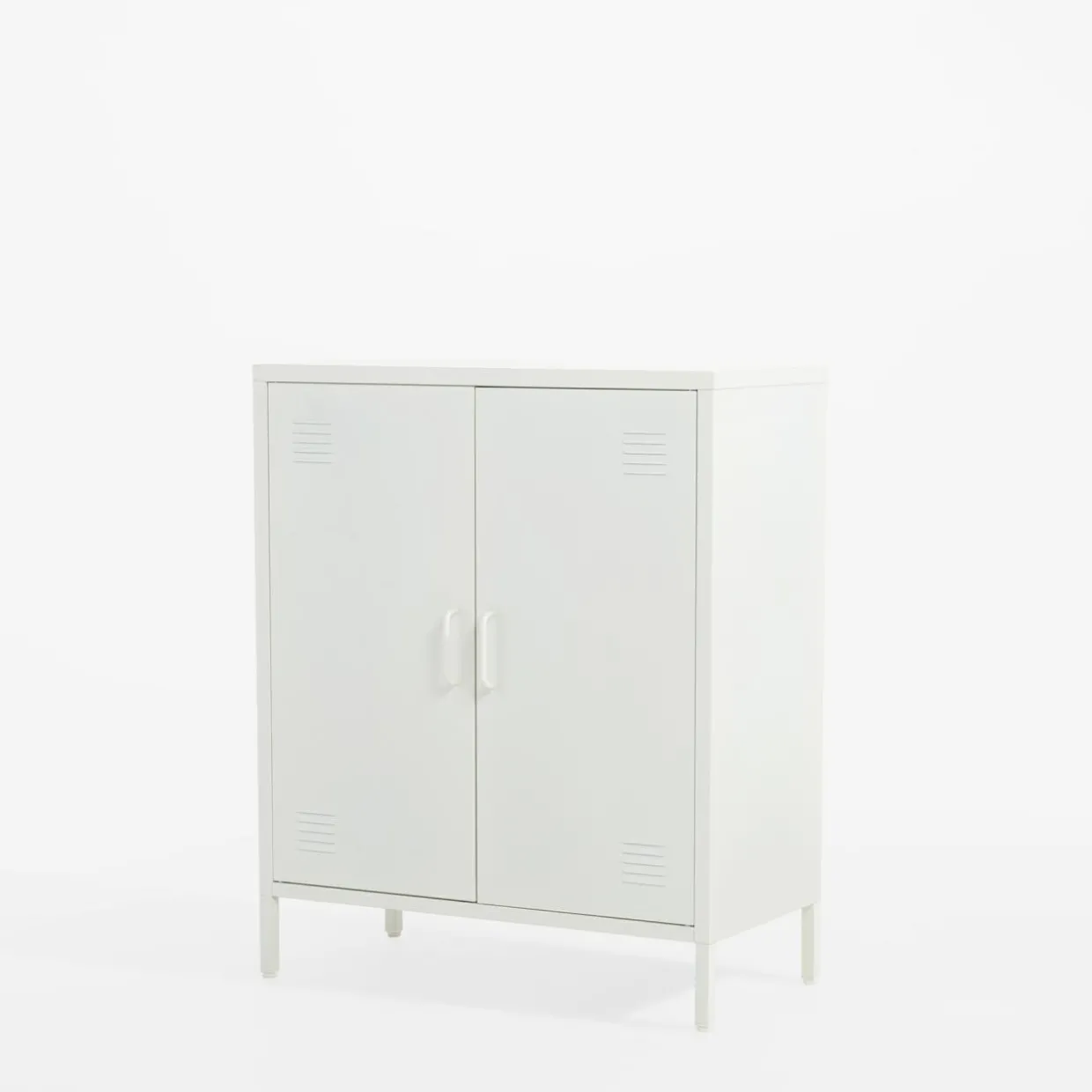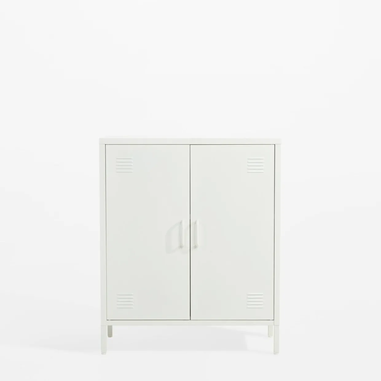 Szafa niska SOLANS uzupełni przestrzeń w skośnych pomieszczeniach lub dopełni brakujące miejsce w pokoju. Niski mebel może pełnić rolę również 2-drzwiowej komody.