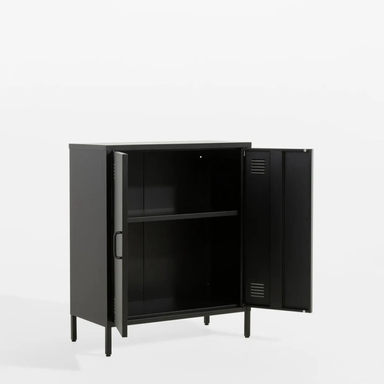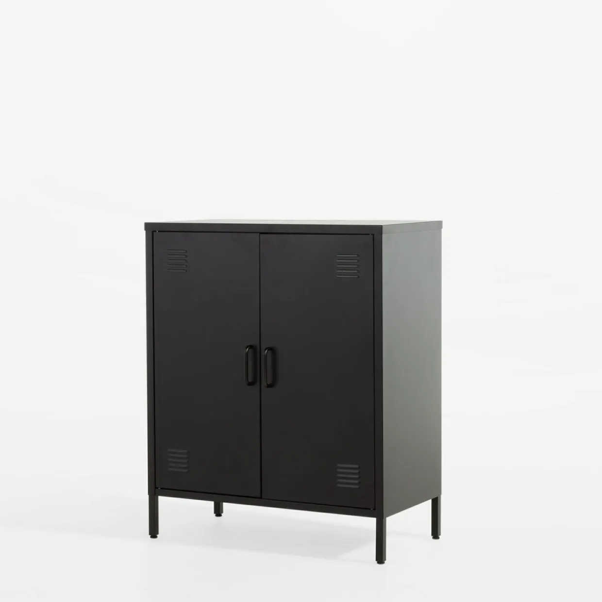 Szafa niska SOLANS uzupełni przestrzeń w skośnych pomieszczeniach lub dopełni brakujące miejsce w pokoju. Niski mebel może pełnić rolę również 2-drzwiowej komody.