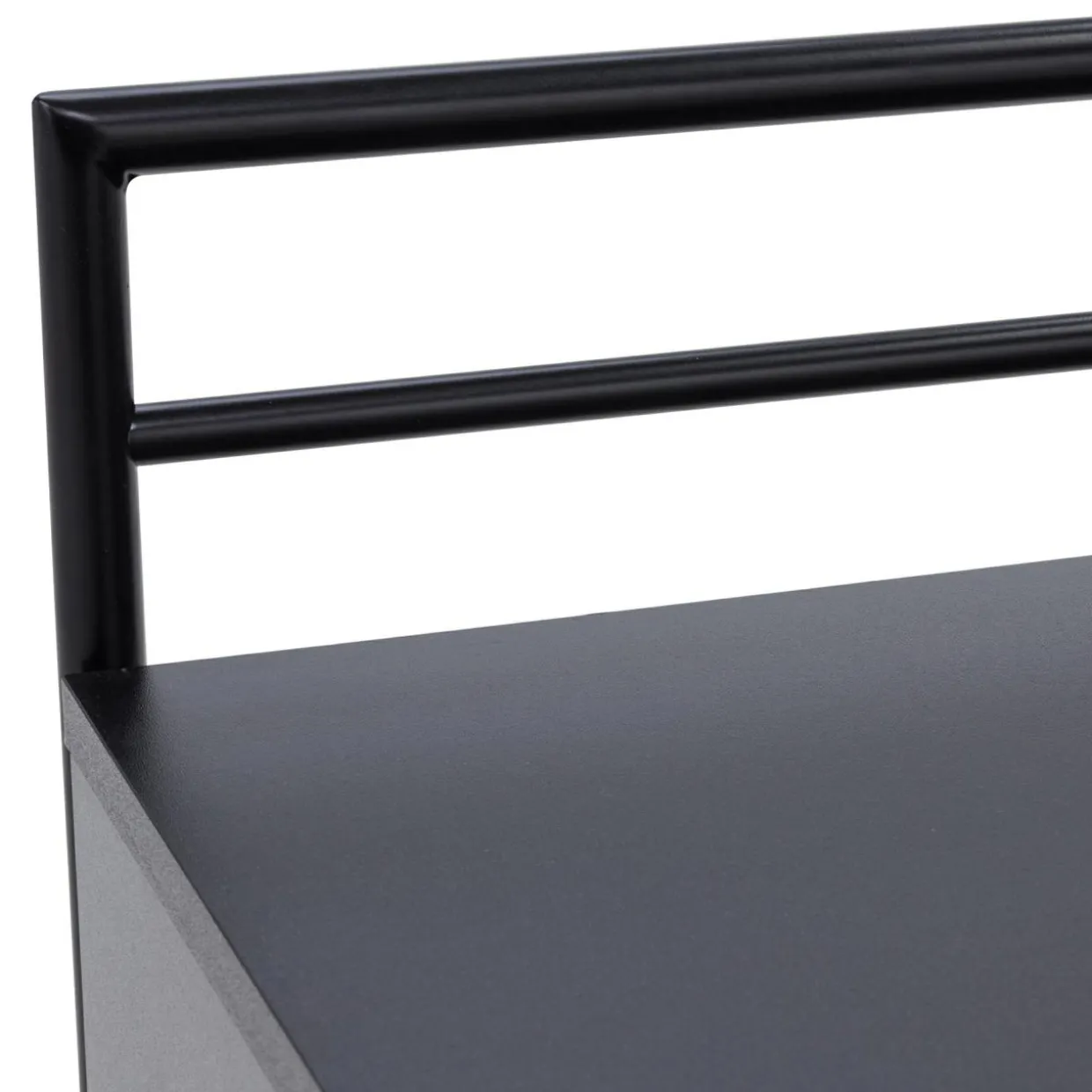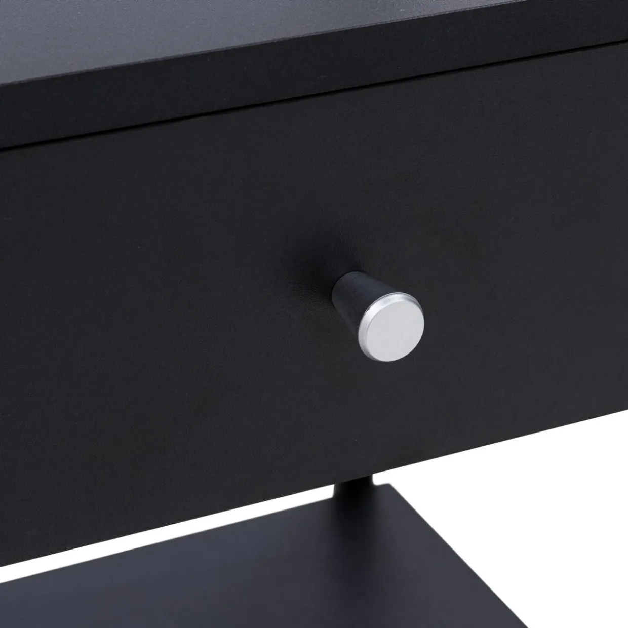 - Blat, szuflada i półka są wykonane z płyty meblowej i wykończone laminatem.