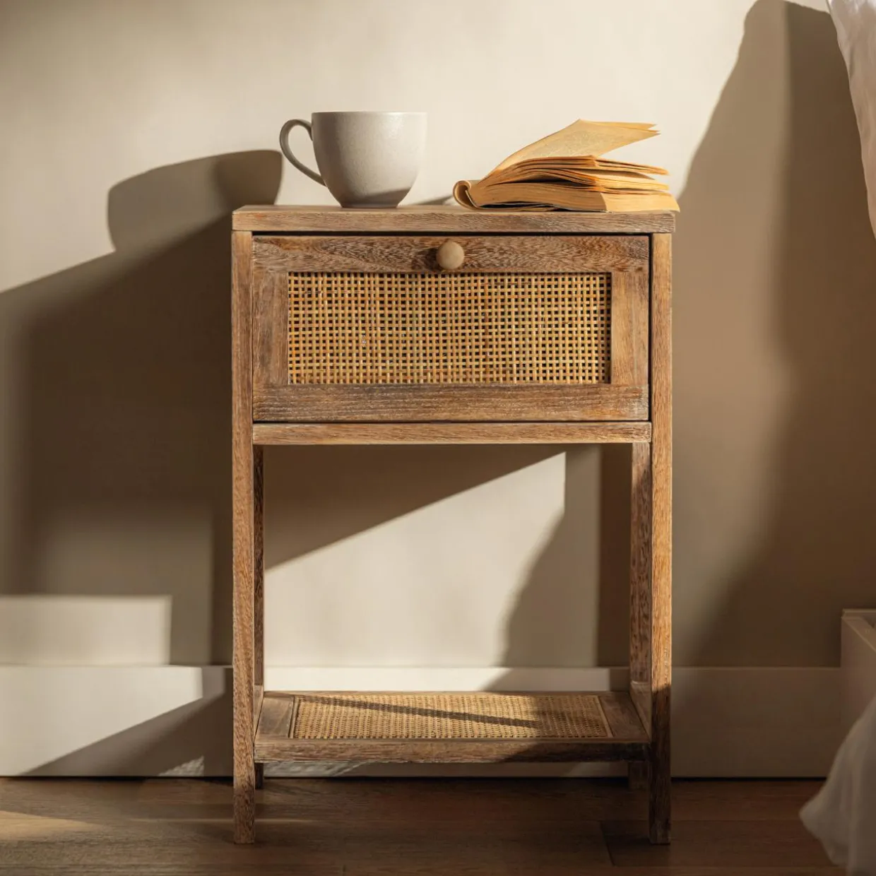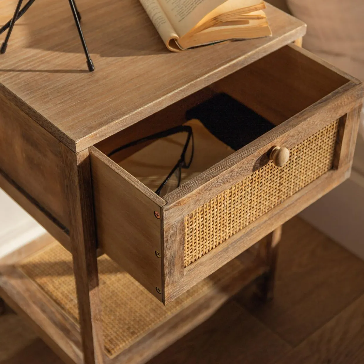 Szukasz szafki nocnej do sypialni w stylu boho lub vintage? Spodoba Ci się szafka z plecionką wiedeńską CENERE.