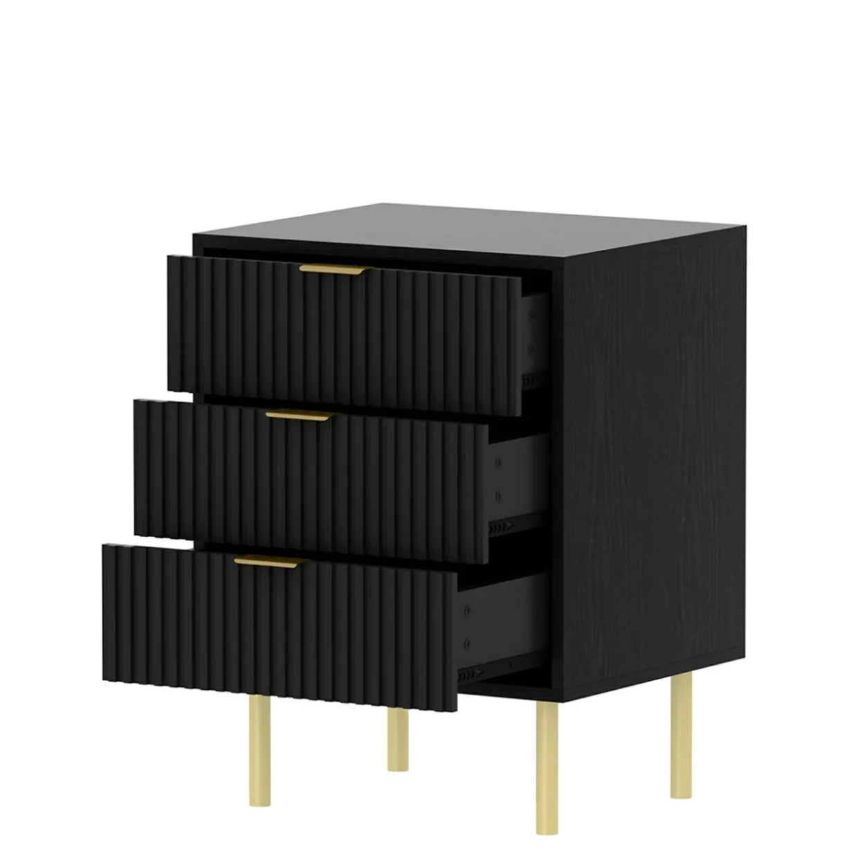 Szafka nocna TOMIE wykończona jest w czarnym kolorze.