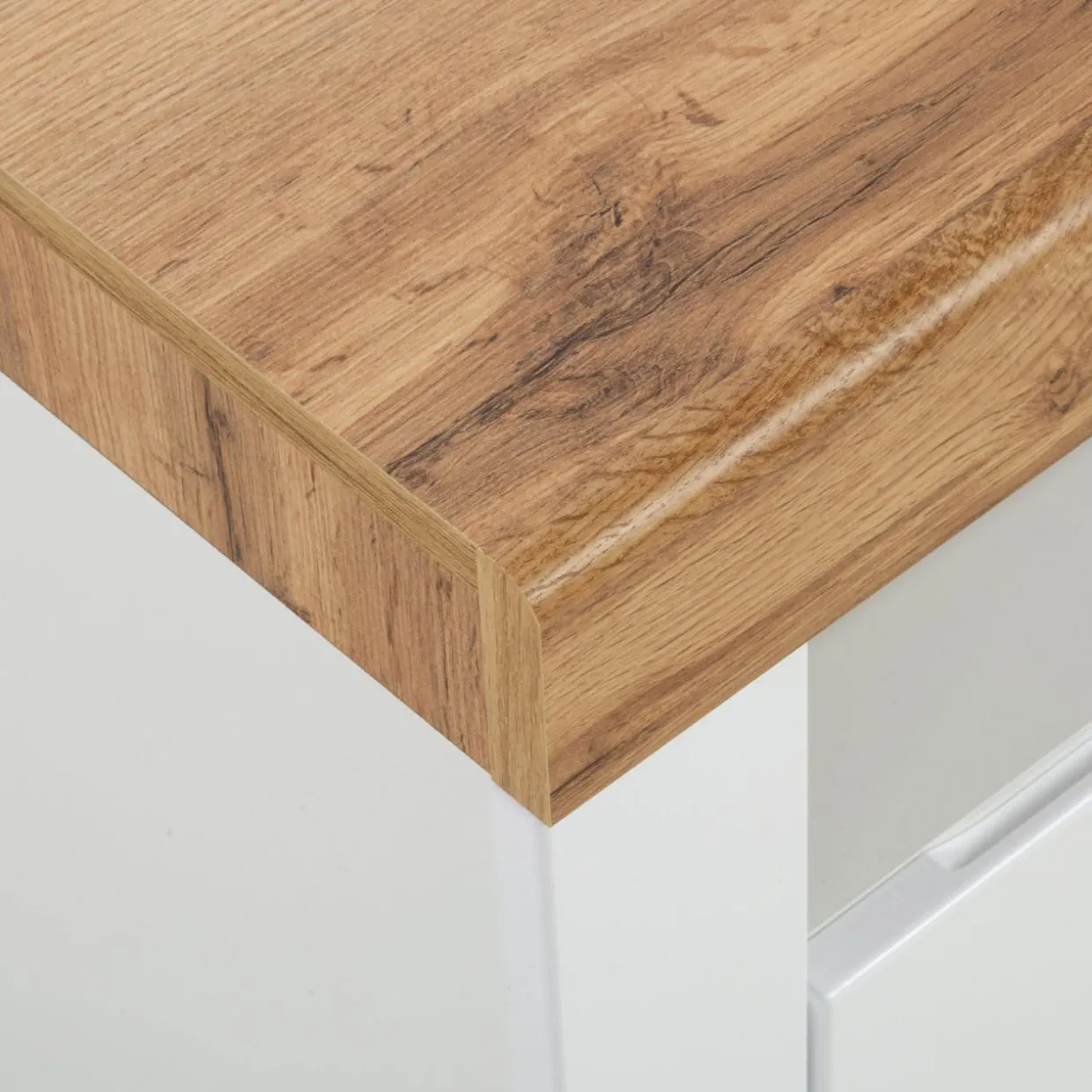 - Elementy w odcieniu dębu wotan posiadają wyczuwalną pod palcami fakturę przypominającą naturalny surowiec. W połączeniu z ciepłym wybarwieniem tworzą przytulną atmosferę.