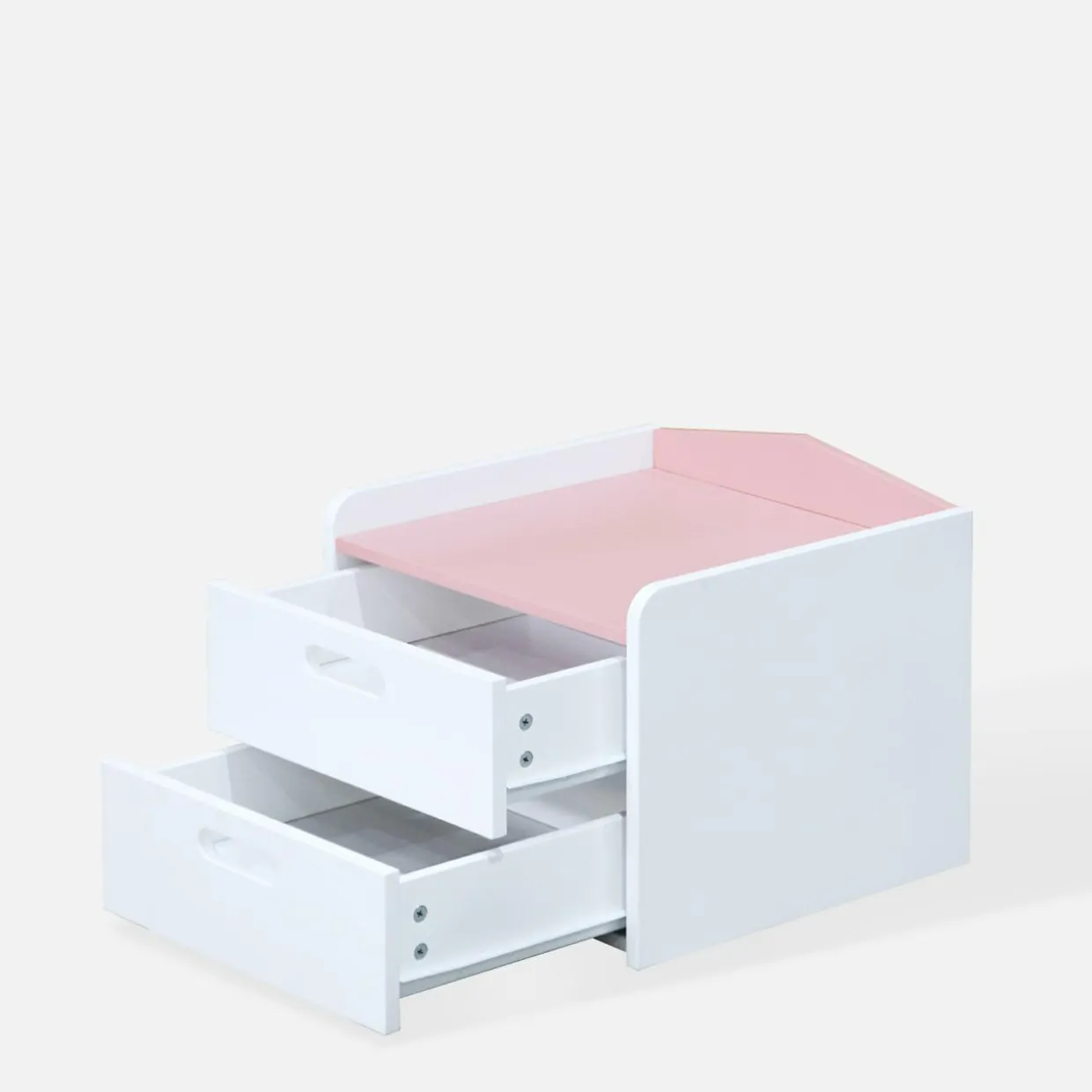 - 2 szuflady – zapewniają miejsce na drobiazgi, książeczki czy inne dziecięce skarby.