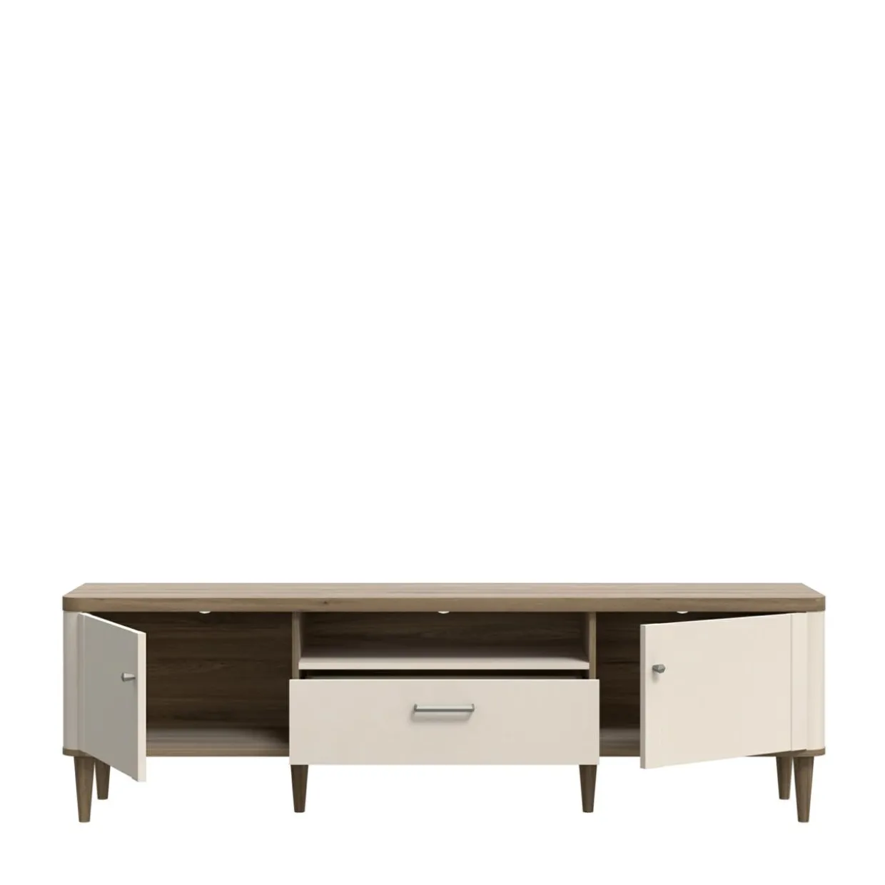 - Delikatnie zaokrąglone kształty korpusów, blatów i nóżek dodają lekkości, wprowadzając harmonię do wnętrza.