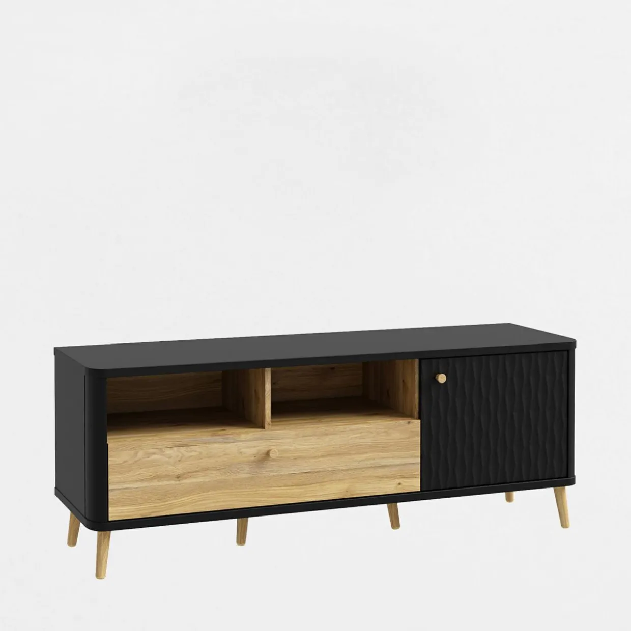Szafka pod telewizor FIXSMILE zmieści się w małym salonie, a na dodatek utrzyma ciężar telewizora i akcesoriów RTV. Maksymalne obciążenie blatu 40 kg pozwala pomieścisz wszystko, czego potrzebujesz do wieczornego oglądania filmów w jednym miejscu.