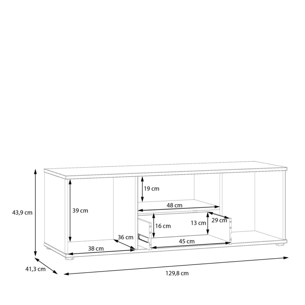 - 2 zamykane szafki, szuflada oraz wnęka na sprzęt RTV.