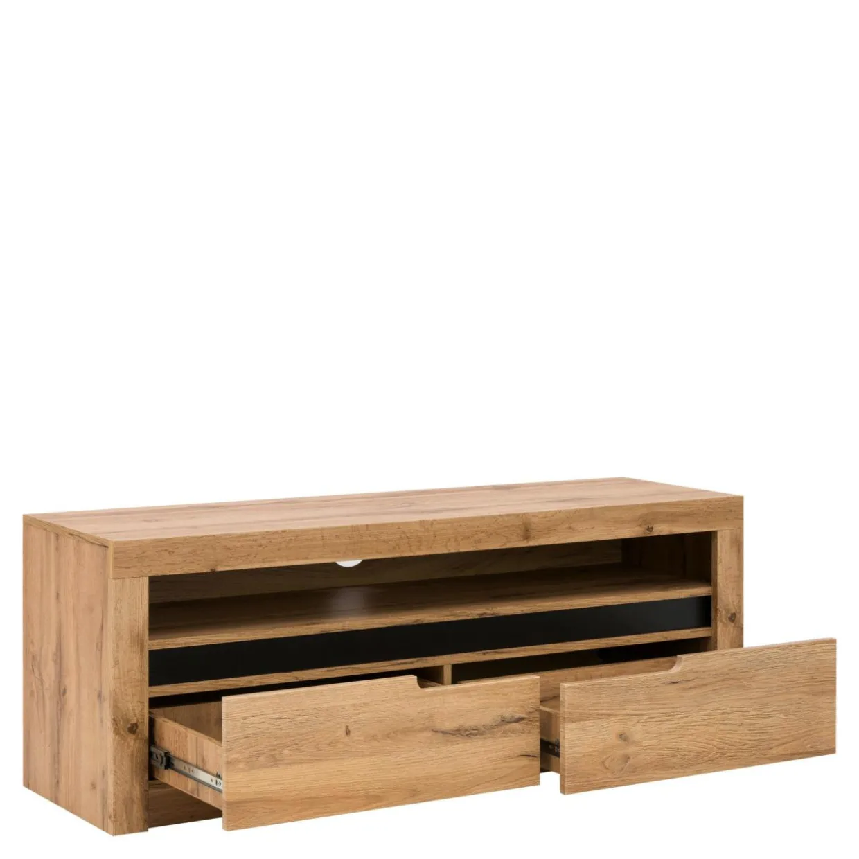 W szerokiej wnęce zmieścisz zarówno dekoder, jak i konsolę. Szafka posiada 2 pojemne szuflady, które przydadzą się na płyty DVD i na akcesoria. Wymiar wnęki: 53,4 cm x 33,4 cm x 11,0 cm