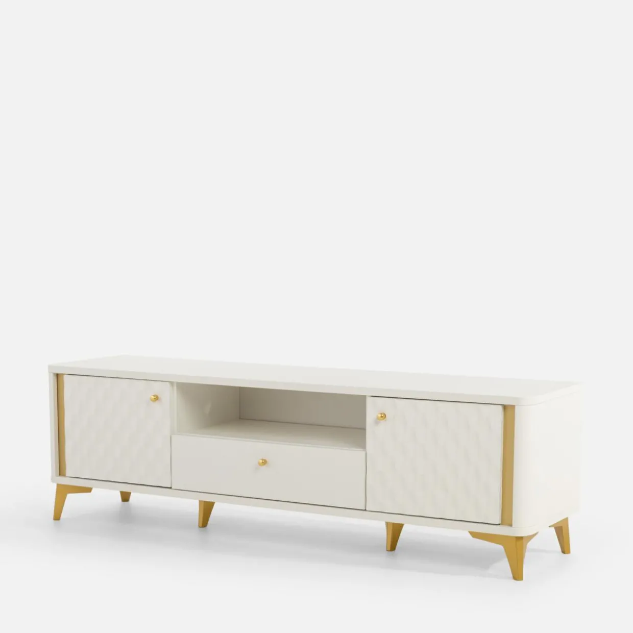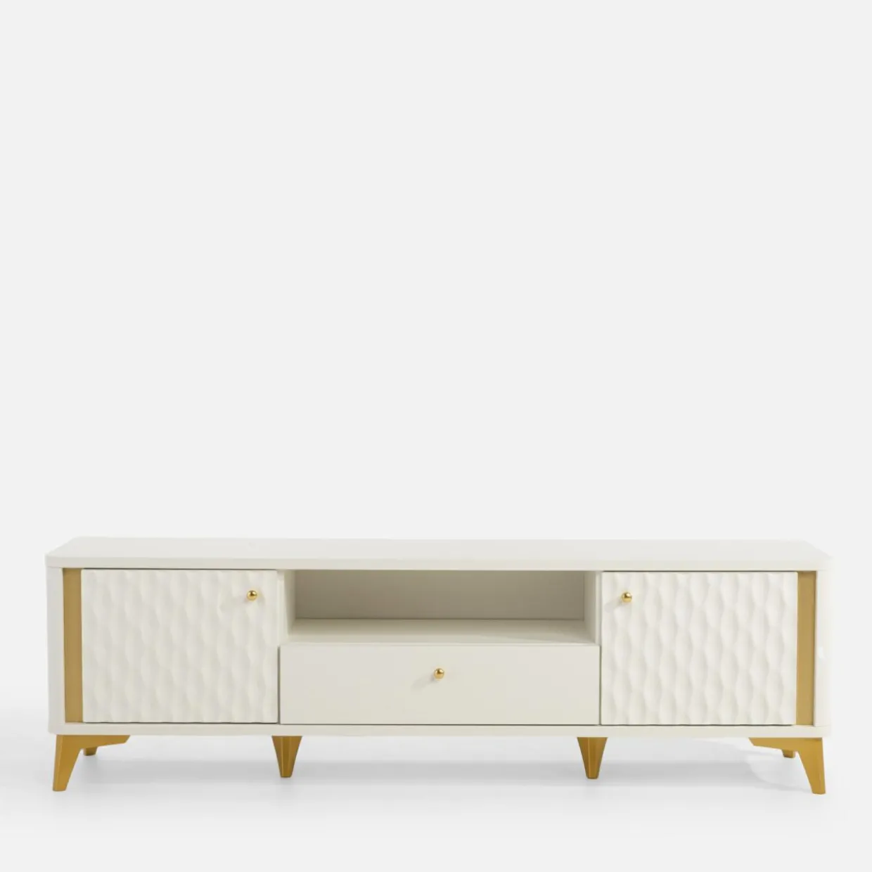 - Na blacie o szerokości 160,4 cm postaw telewizor lub dekoracje.