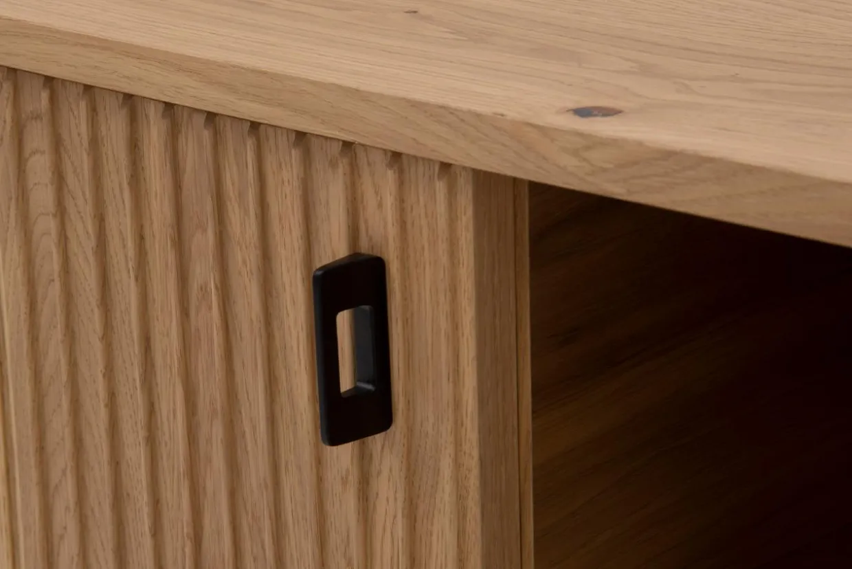 - Korpus szafki wykonany jest z płyty meblowej 16 mm i wykończony drewnianą okleiną, która nadaje meblowi naturalny wygląd.