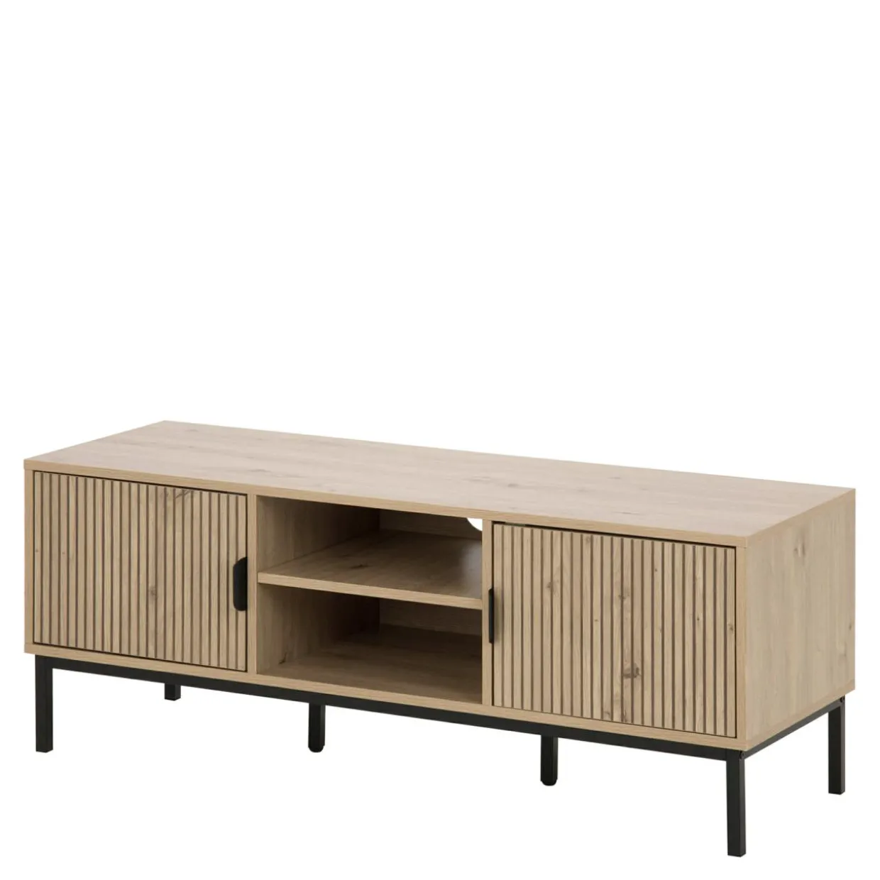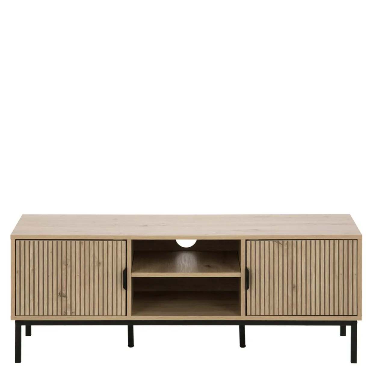 - Szafka RTV posiada fronty z ozdobnym żłobieniem, dzięki czemu przykuje uwagę i będzie stanowić punkt centralny w aranżacji wnętrza.