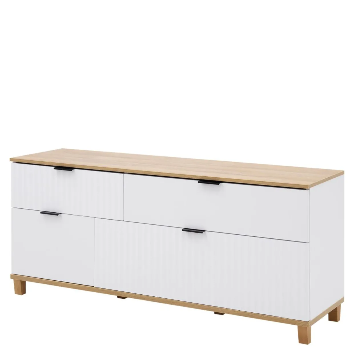 Szafka z szufladami RTV w stylu skandynawskim PLISSEE sprawdzi się w niewielkim salonie.