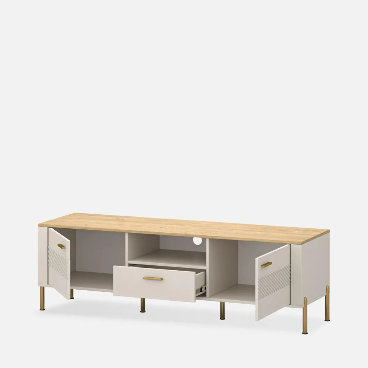 - Złote elementy dopełniają mebel, dodając nuty klasy i szyku.