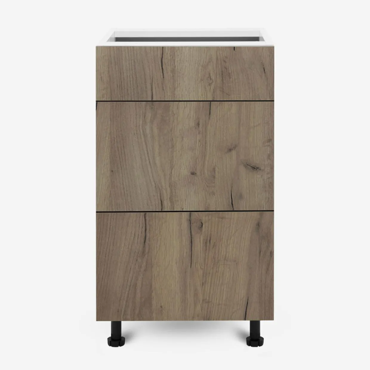 - W szafce podzielonej na 3 szuflady każda łyżka i chochla znajdzie swoje miejsce, a zapas mąki i makaronu będzie pod ręką podczas gotowania.