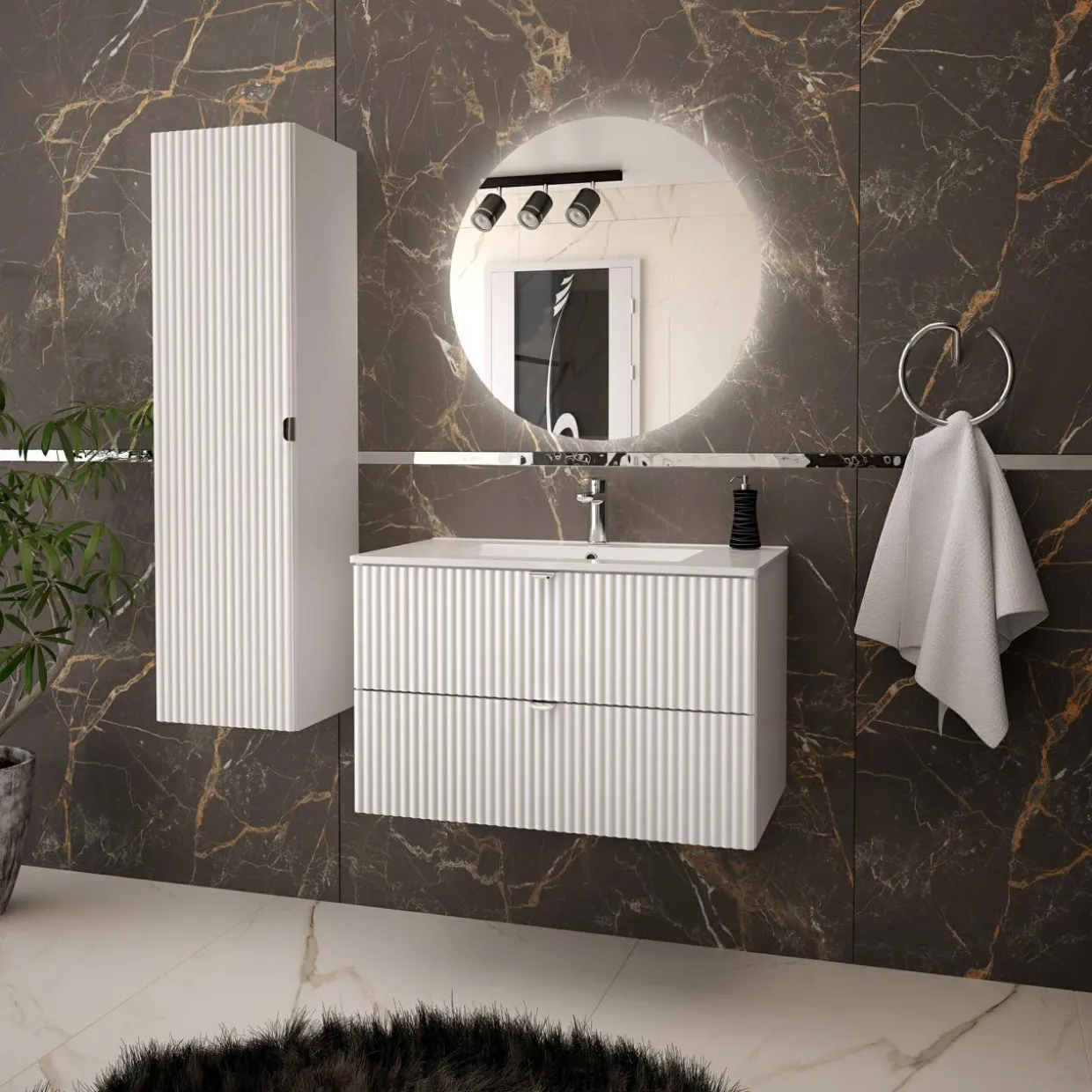 Z szafką umywalkową BELT nie zabraknie miejsca na akcesoria do łazienki. Suszarkę, żele pod prysznic i kosmetyki schowasz w 2 szufladach.