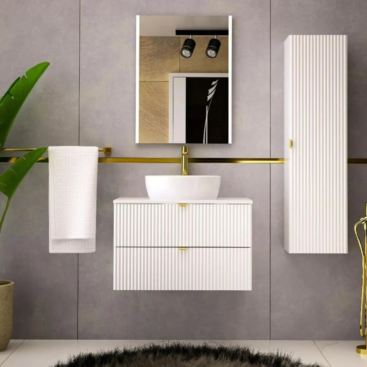 - Ryflowane fronty oraz metalowe uchwyty świetnie wpiszą się w nowoczesne aranżacje.