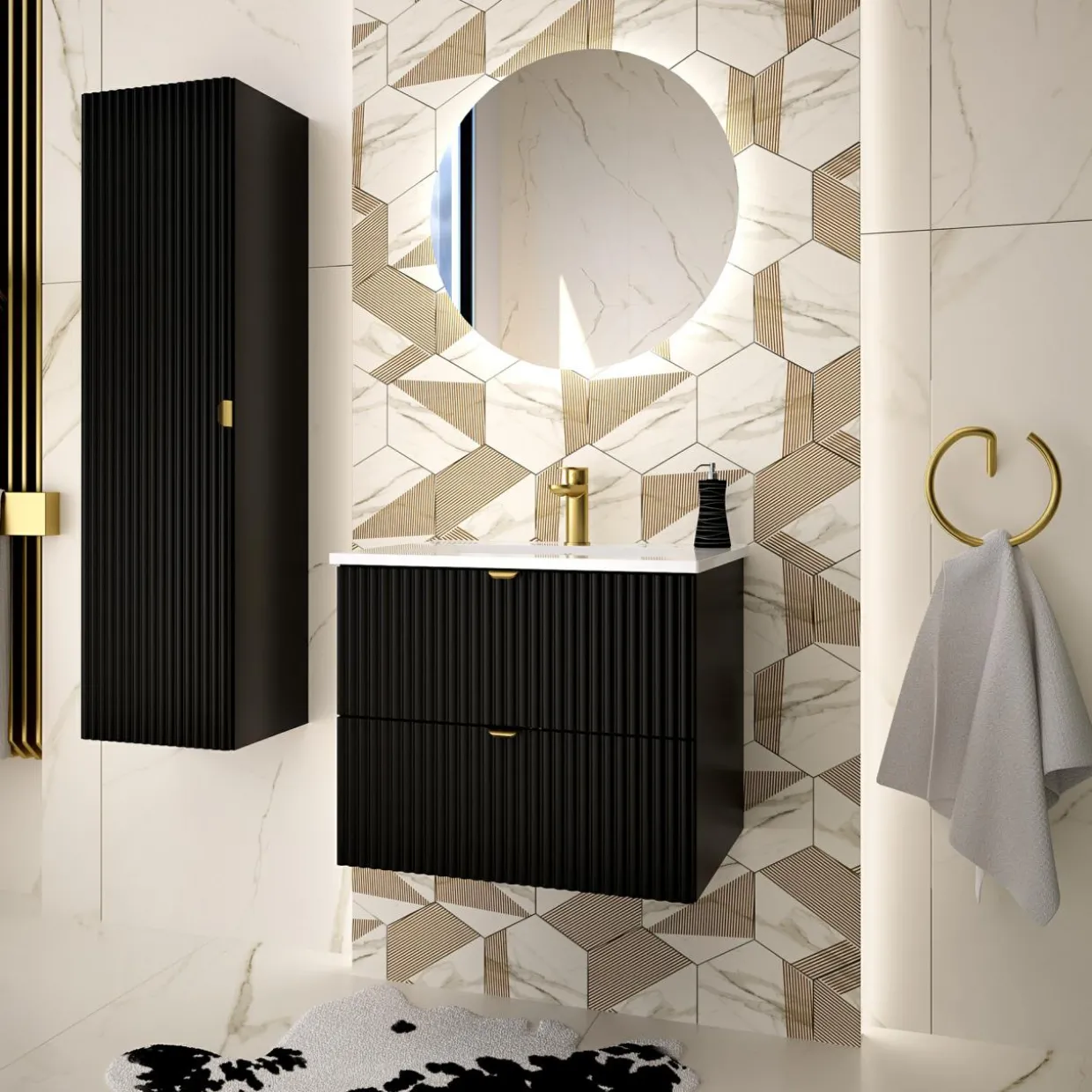 - Ryflowane fronty oraz metalowe uchwyty świetnie wpiszą się w nowoczesne aranżacje.