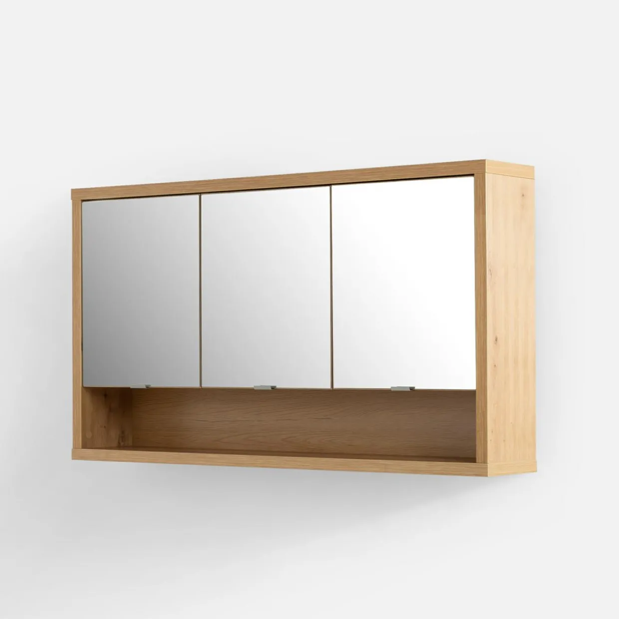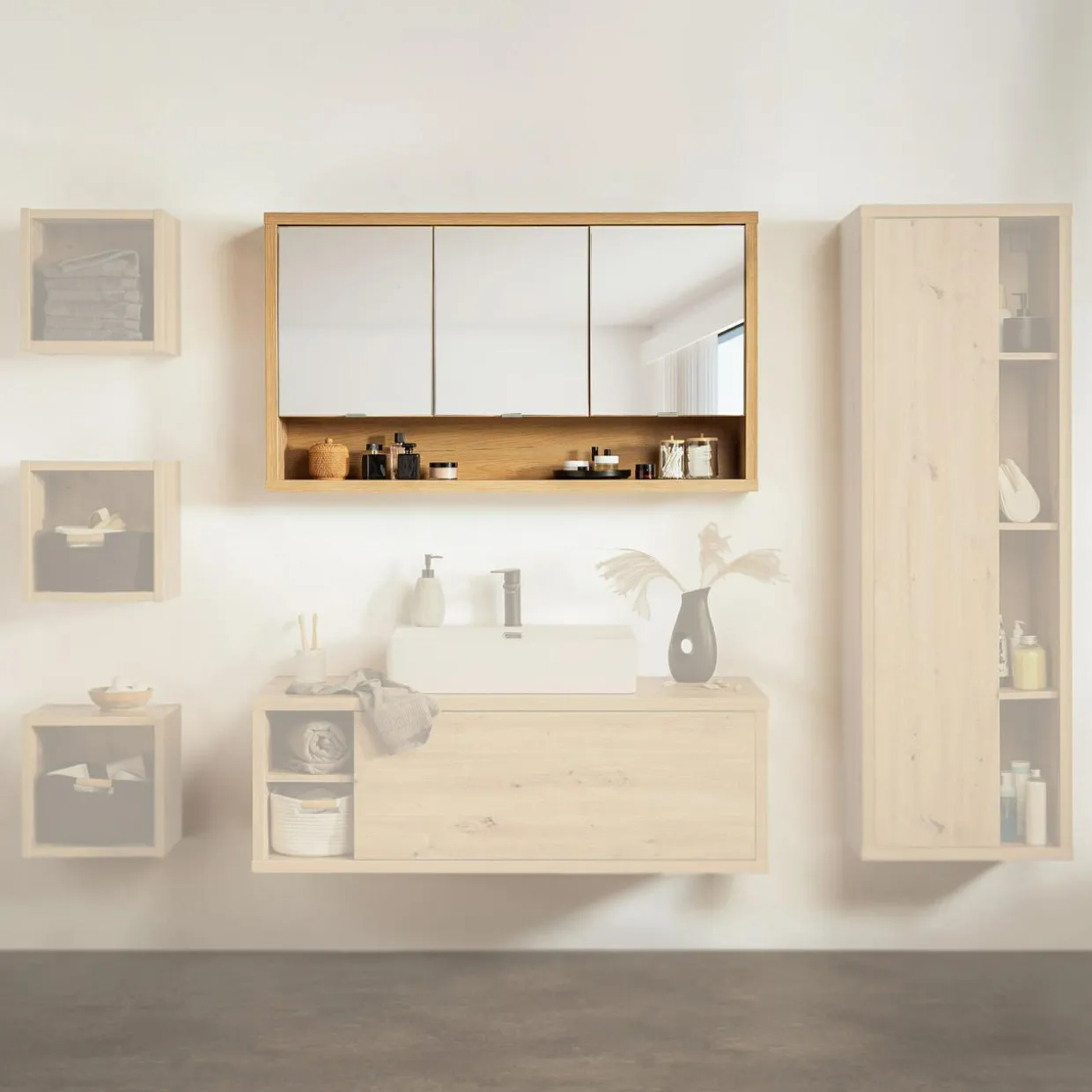 Wieszając na ścianie szafkę łazienkową LADAMA otrzymujesz przestrzeń do zagospodarowania oraz lustra zdobiące każdą z 3 szafek, nieodzowne przy codziennych zabiegach upiększających.