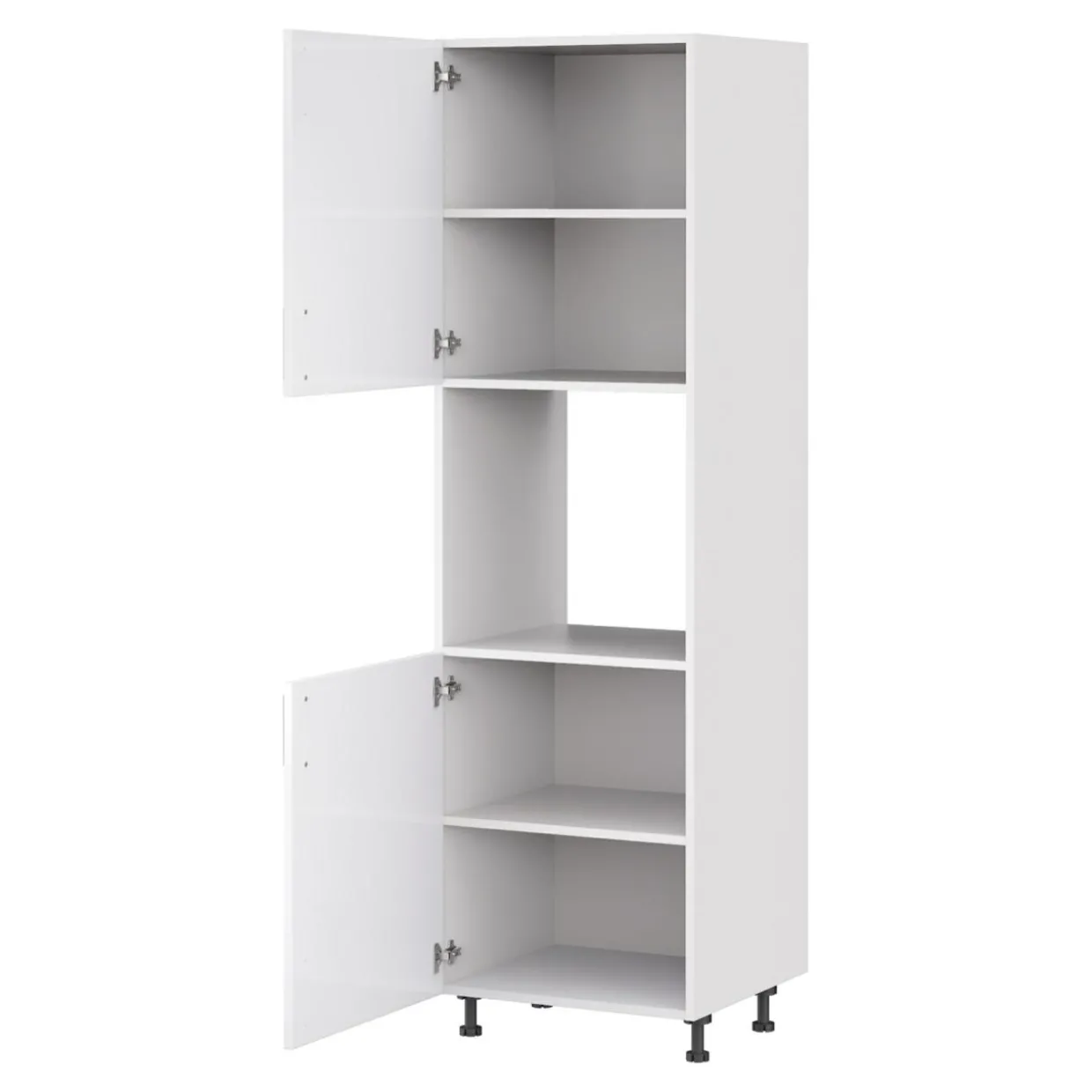 W jego górnej i dolnej części znajdują się przedzielone półkami szafki, natomiast część środkowa przeznaczona jest do montażu piekarnika.
