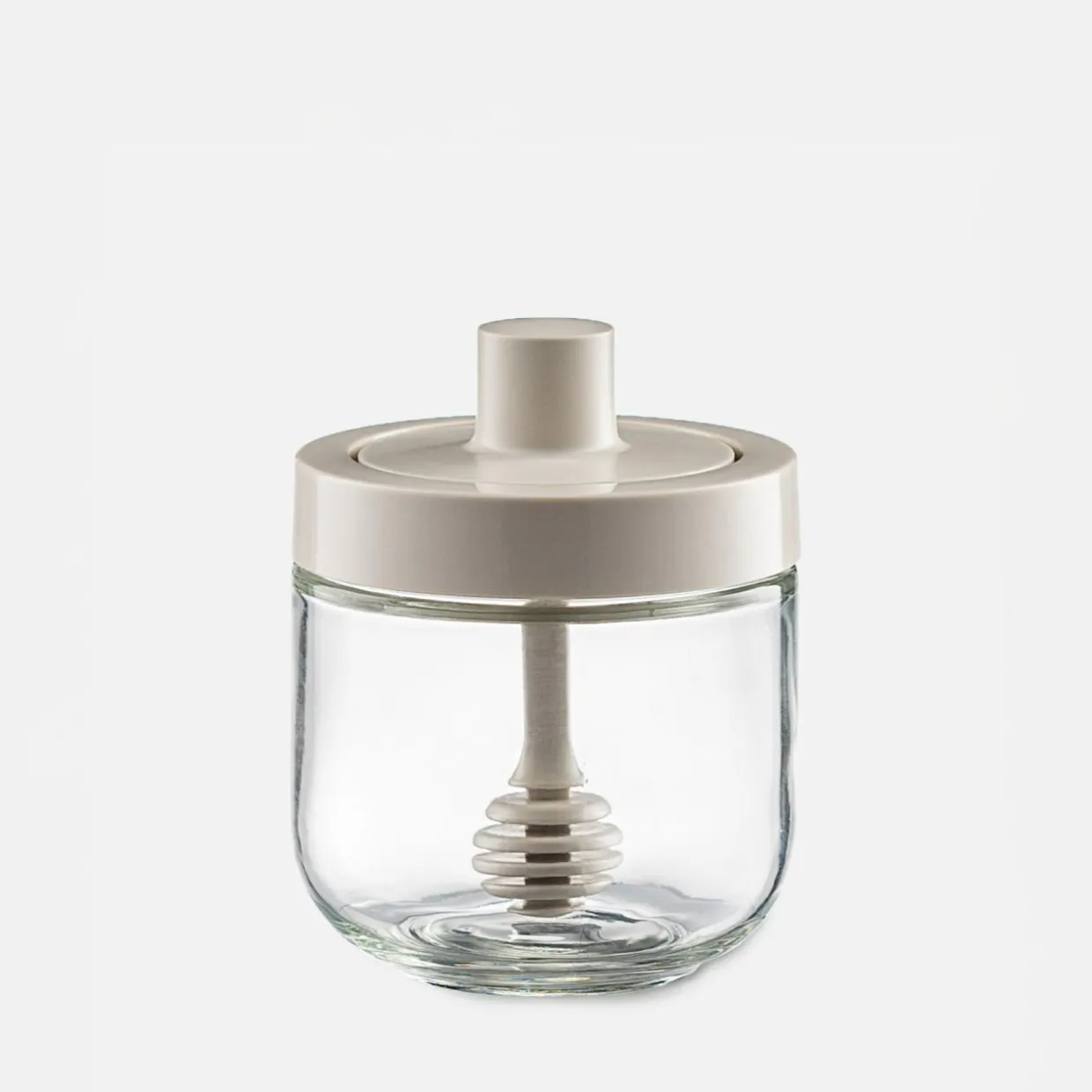 Szklany pojemnik na miód z czerpakiem 300 ml jasnoszary