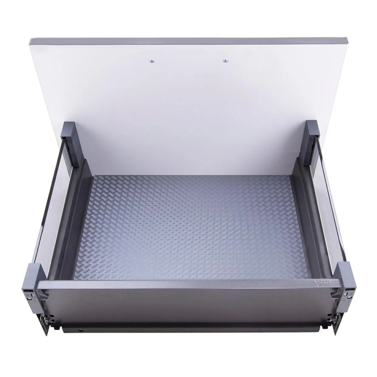 MINI BOX różni się od standardowej szuflady głębokością – dedykowany jest do płytkich korpusów w miejscach, gdzie nie możesz zastosować głębokich szuflad.