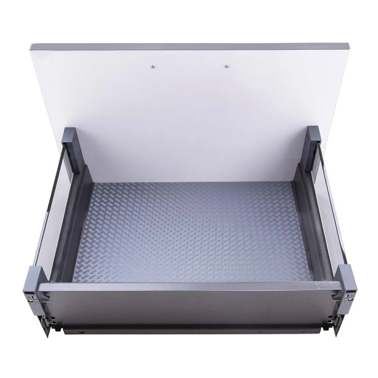 MINI BOX różni się od standardowej szuflady głębokością – dedykowany jest do płytkich korpusów w miejscach, gdzie nie możesz zastosować głębokich szuflad.