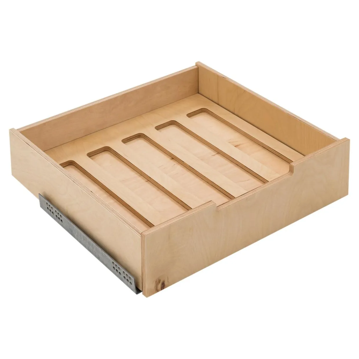 Niniejszy model szuflady został wykonany z płyty meblowej w jasnej kolorystyce drewna.