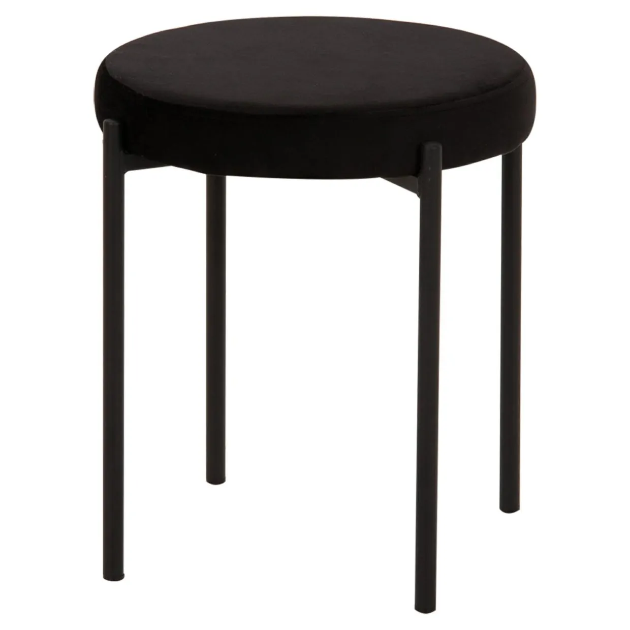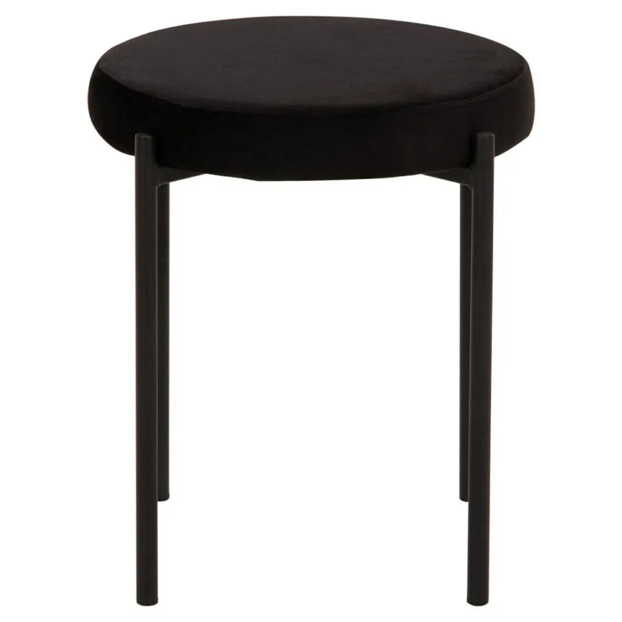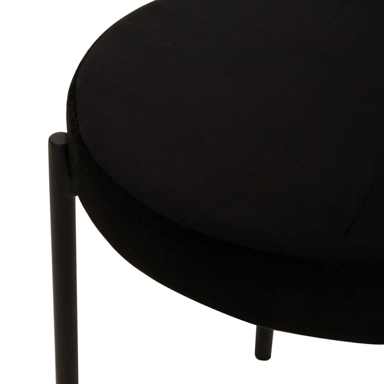 Taboret wykończono miękkim welurem w kolorze głębokiej czerni. Welur jest miły w dotyku, a czarny kolor jest tak uniwersalny, że taboret wpasuje się w eleganckie i nowoczesne wnętrza.