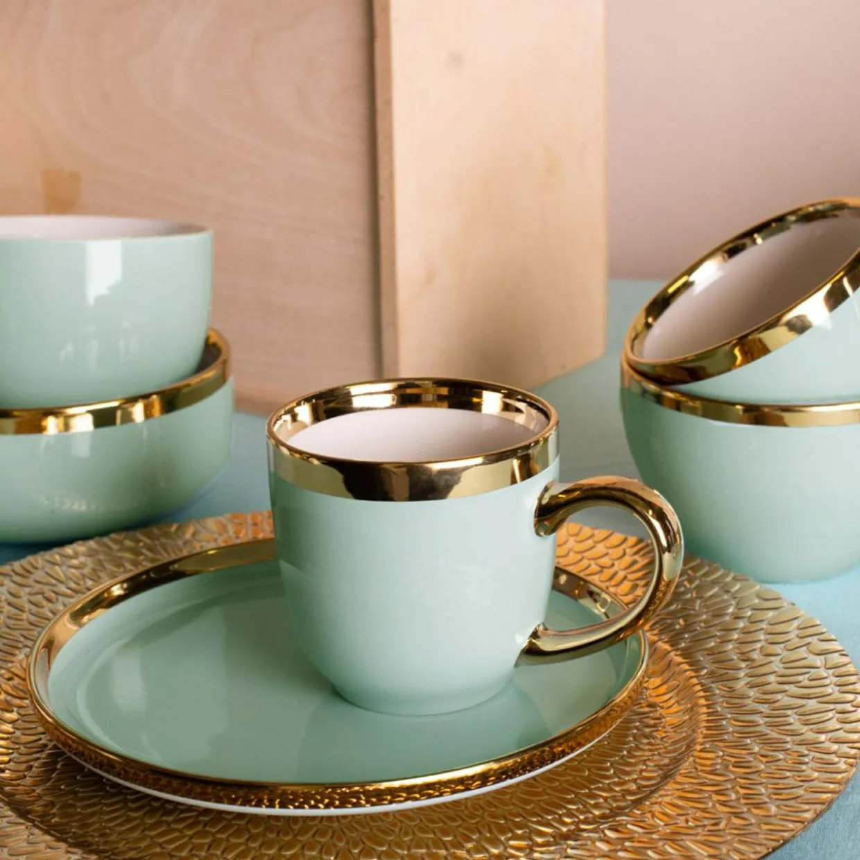 Talerz deserowy jasna zieleń AURORA GOLD 20 cm