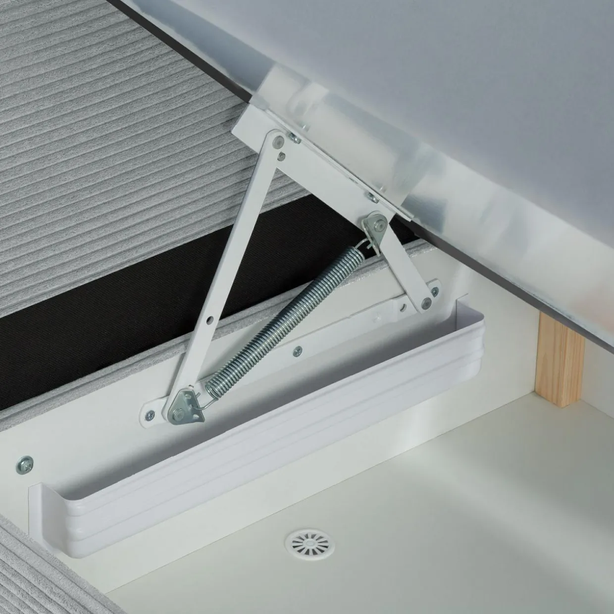 - Tapczan OPEN posiada pod siedziskiem pojemnik na pościel, do którego możesz schować poduszkę, pościel i prześcieradło.