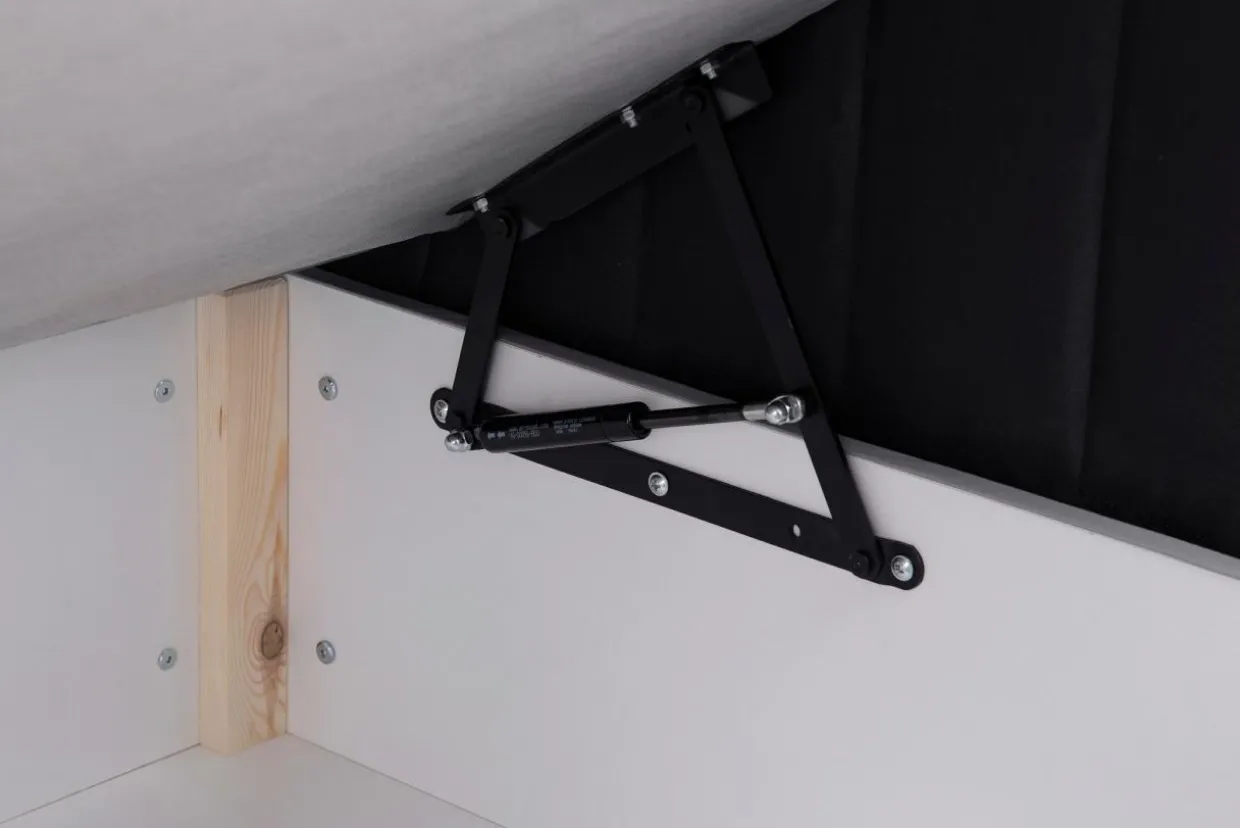- Pod materacem znajduje się pojemnik, w którym możesz trzymać pościel.