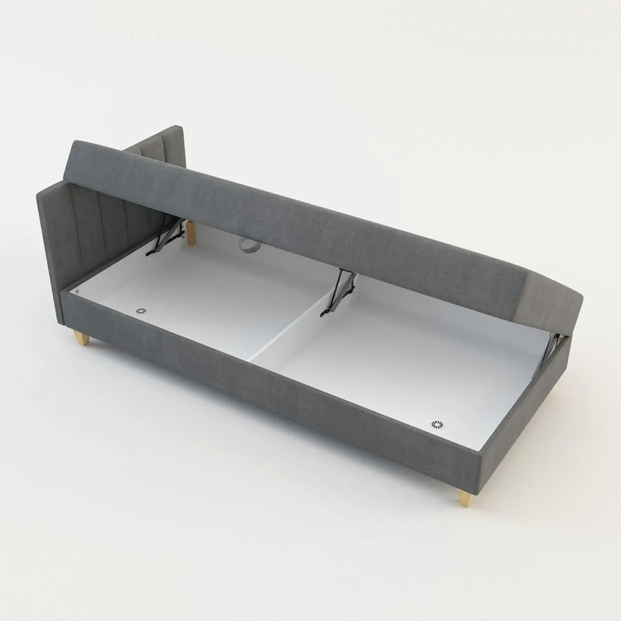 - Pod miejscem do spania znajduje się pojemnik. Przechowasz w nim pościel lub lekkie tekstylia.