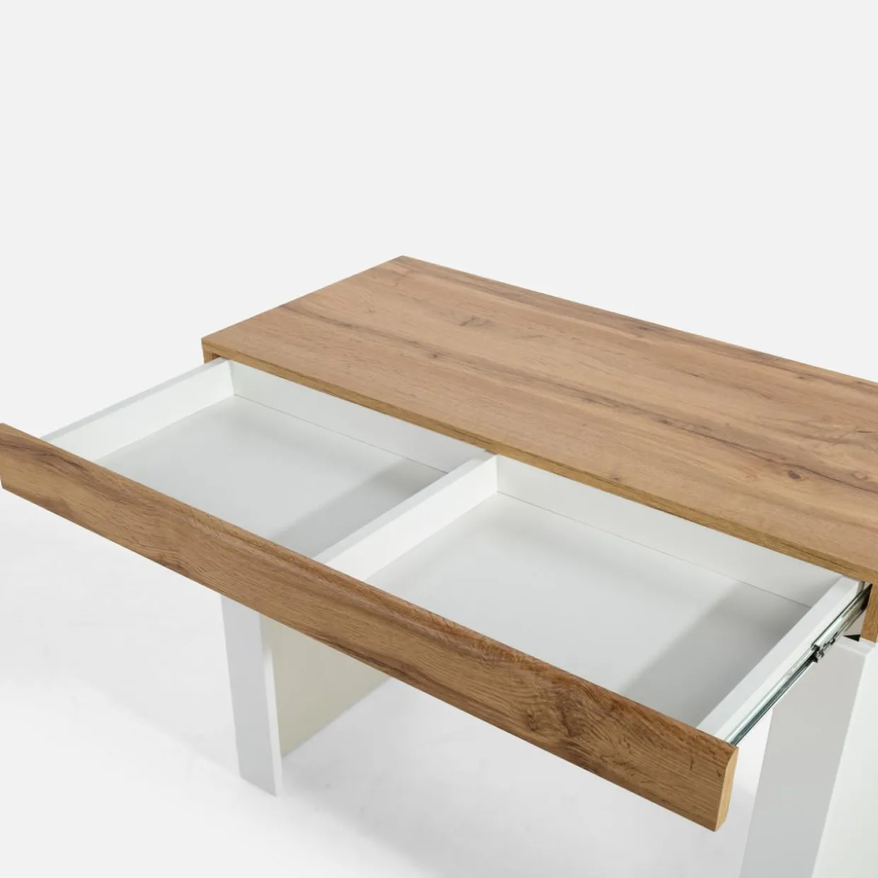 - W podzielonej na 2 części szufladzie zachowasz porządek między kosmetykami i biżuterią.