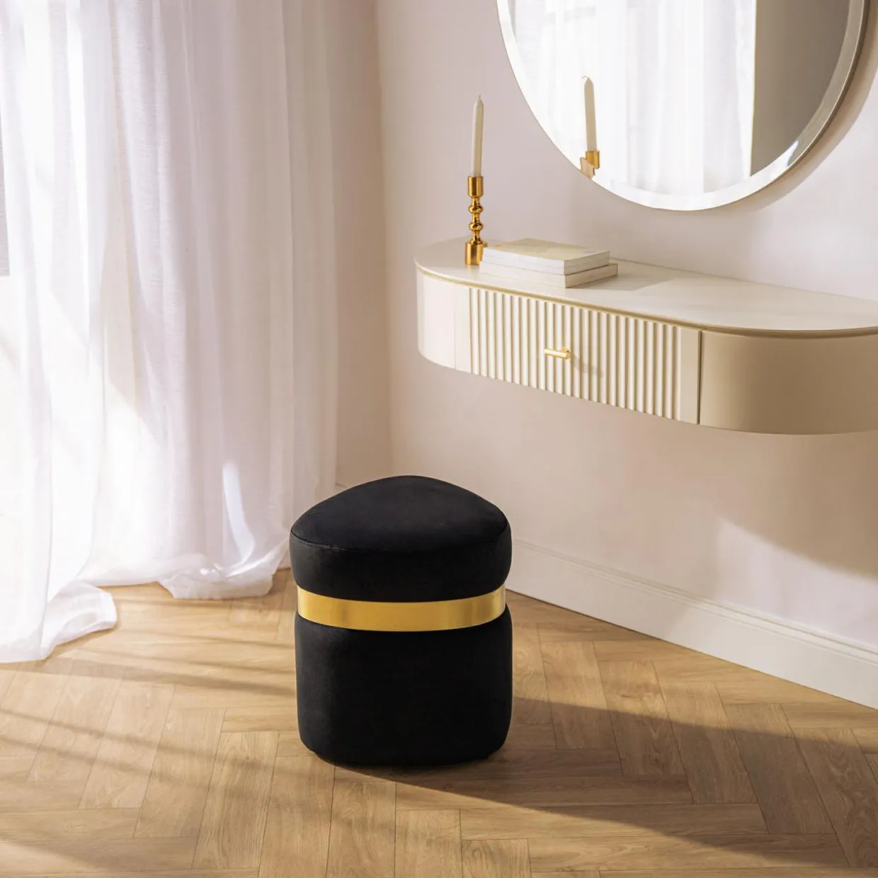 Na blacie o szerokości 105 cm postawisz ulubione flakony perfum, krem do rąk i twarzy. Podczas szykowania się do wyjścia szybko odnajdziesz ulubiony zapach.
