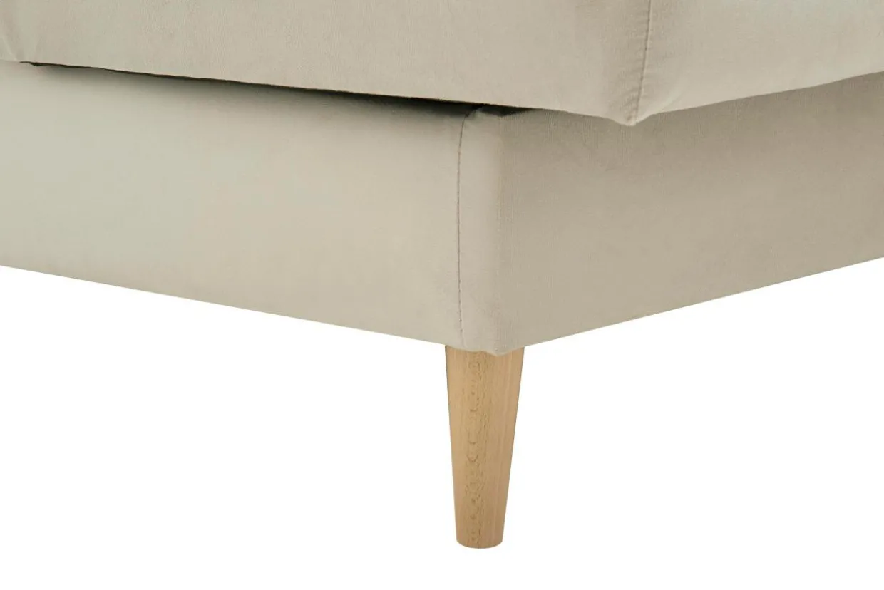 Przednie, stożkowe nóżki wersalki zostały wykonane z bukowego drewna. Stanowią delikatny i nadający lekkości kontrast do klasycznej stylistyki górnej części mebla i ukłon w stronę estetyki skandynawskiej.