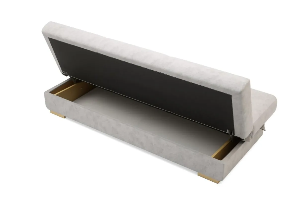 Pod siedziskiem znajdziemy pojemnik na pościel.