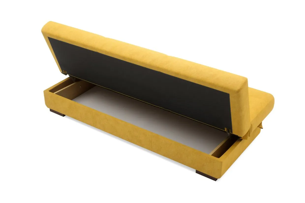 Pod siedziskiem znajdziemy pojemnik na pościel.